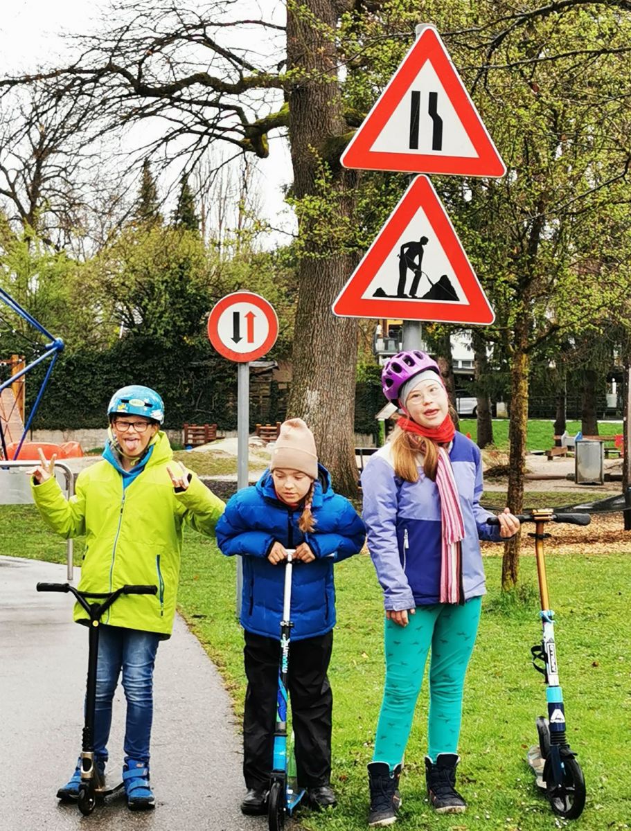 Mit einigen Schülern der zweiten Klasse (und ihren Scootern) haben wir dem Verkehrslehrgarten im Stölzlpark besucht. Richtiges Verhalten als Verkehrsteilnehmer muss natürlich trainiert werden, und da bietet dieser Übungsplatz wirklich tolle Möglichkeiten; und Spaß hatten wir natürlich auch.