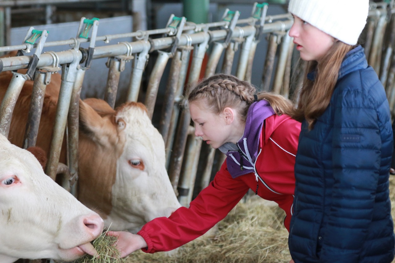 Vieh- und Forstwirtschaft hautnah erlebte die 2. Klasse auf einem Bauernhof in Anthering.
