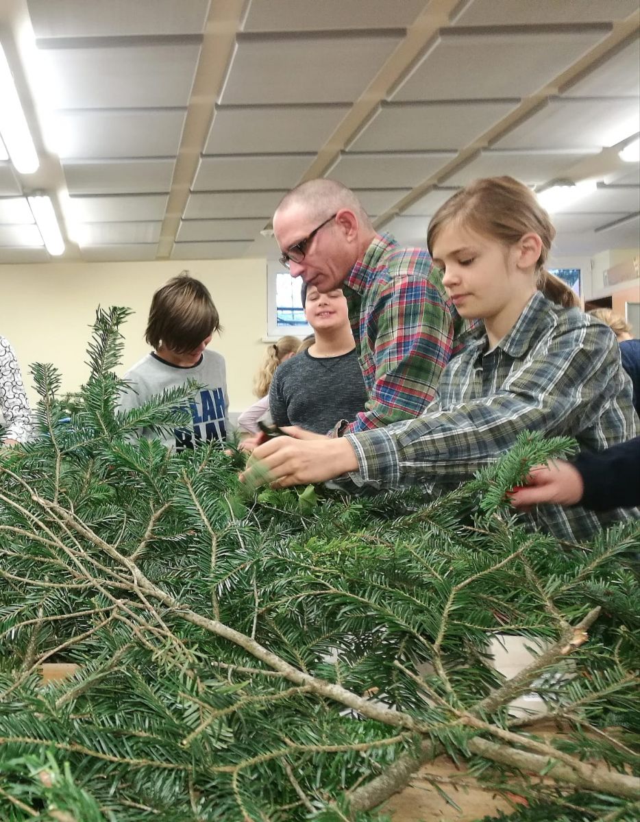 Das Adventkranzbinden der 2. Klasse NMS war auch heuer ein fröhliches, stimmungsvolles und produktives Ereignis, bei dem Eltern, Lehrer_innen und Schüler_innen ihr Können unter Beweis stellten.