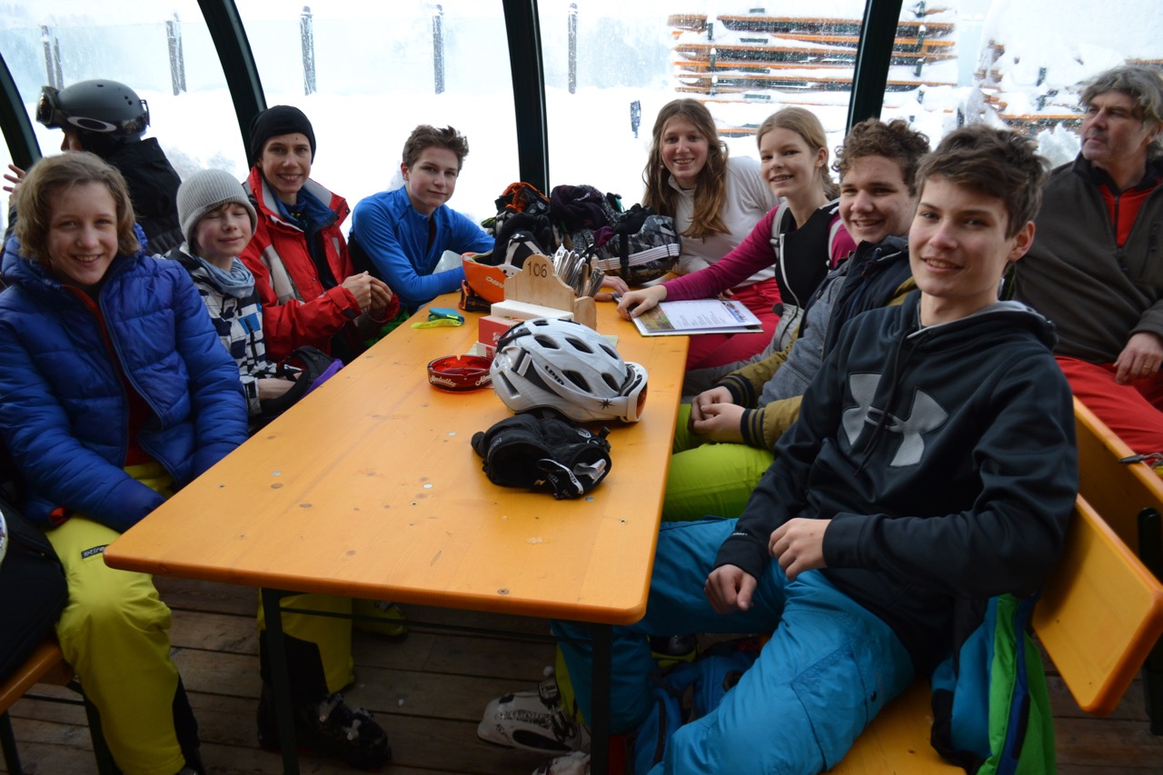 Mittags wärmten wir uns auf in der Hütte, stärkten uns (das Essen war sehr lecker!) und sammelten Kräfte für den Schilauf am Nachmittag.