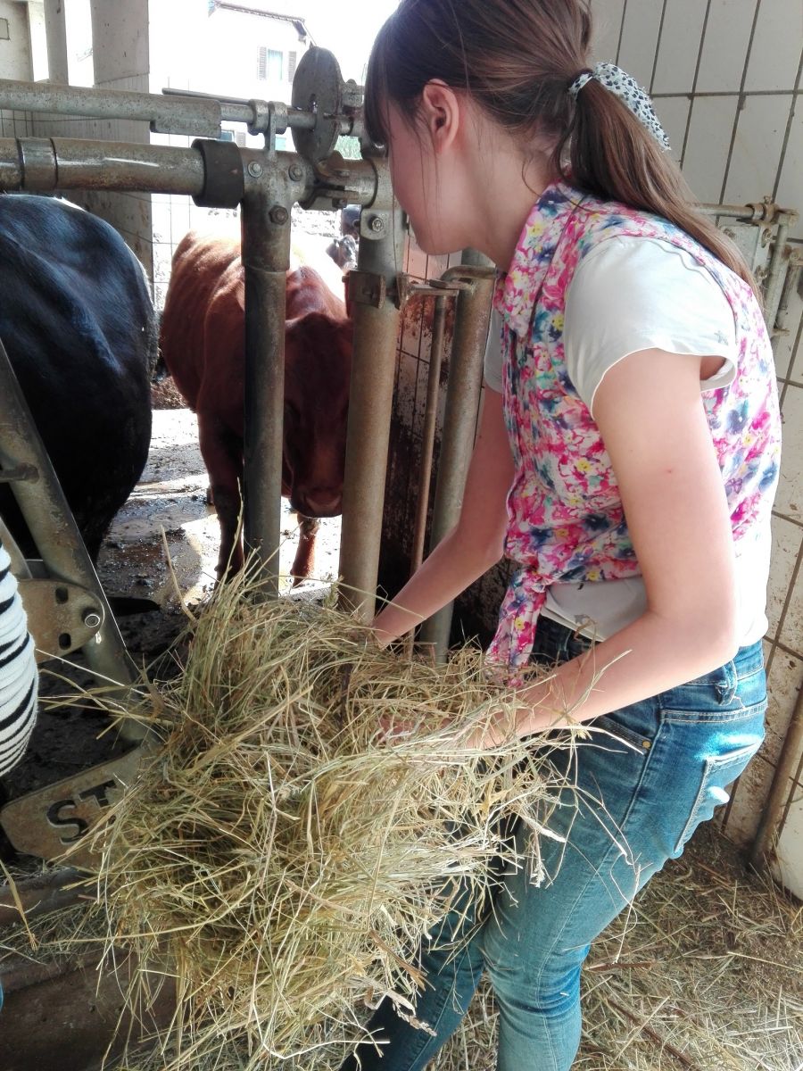 Außer der Besichtigung des Stalles und des selbst gebauten Räucherofens, durften die Schüler auch in den Heuboden, wo ihnen, unter anderem, der Unterschied zwischen Heu und Stroh praxisnah vermittelt wurde.