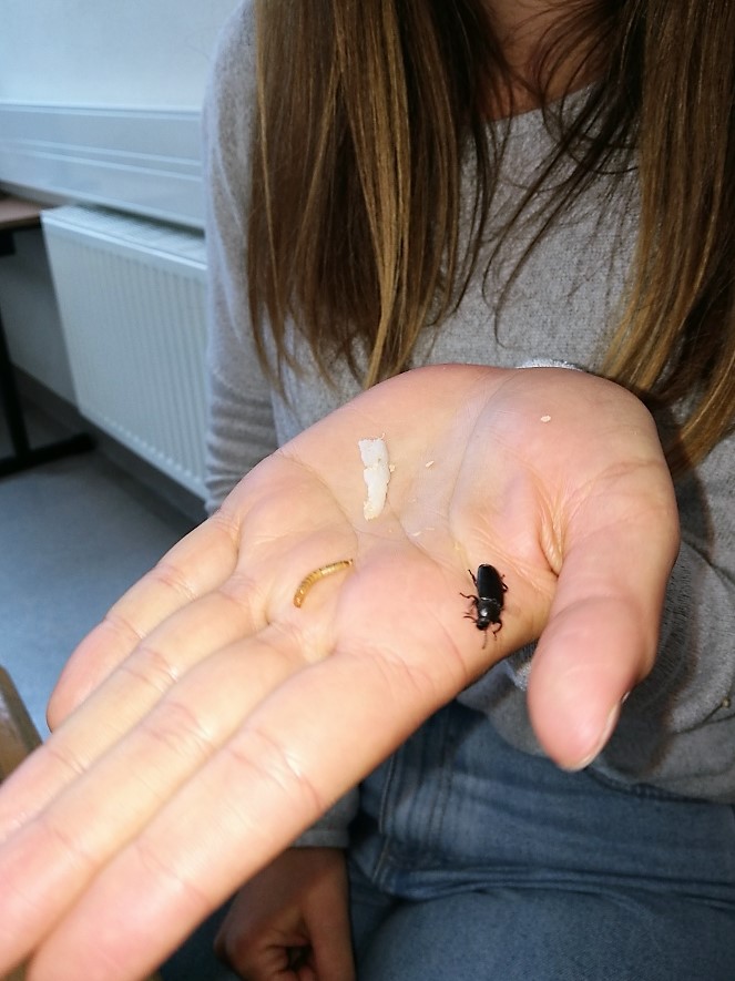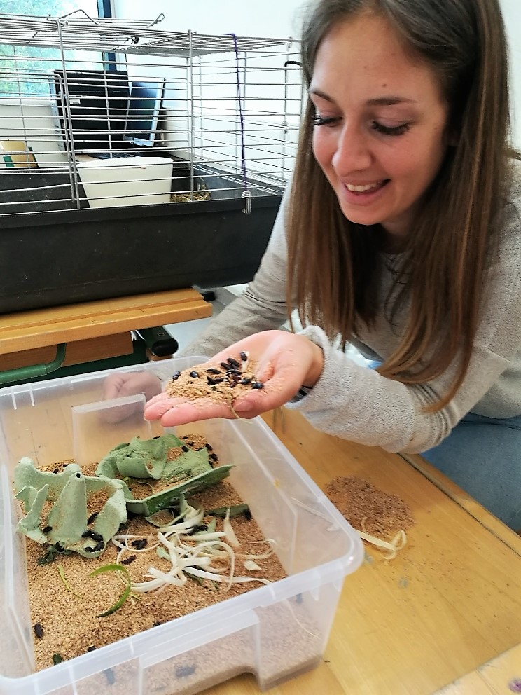 Es begann im Jänner mit dem Kauf zweier Packungen Mehlkäferlarven. Im Rahmen des Biologieunterrichts sollten die Kids live mitbekommen, wie sich viele Insekten mit Metamorphose entwickeln: (Ei, Larve, Nymphe, Imago).