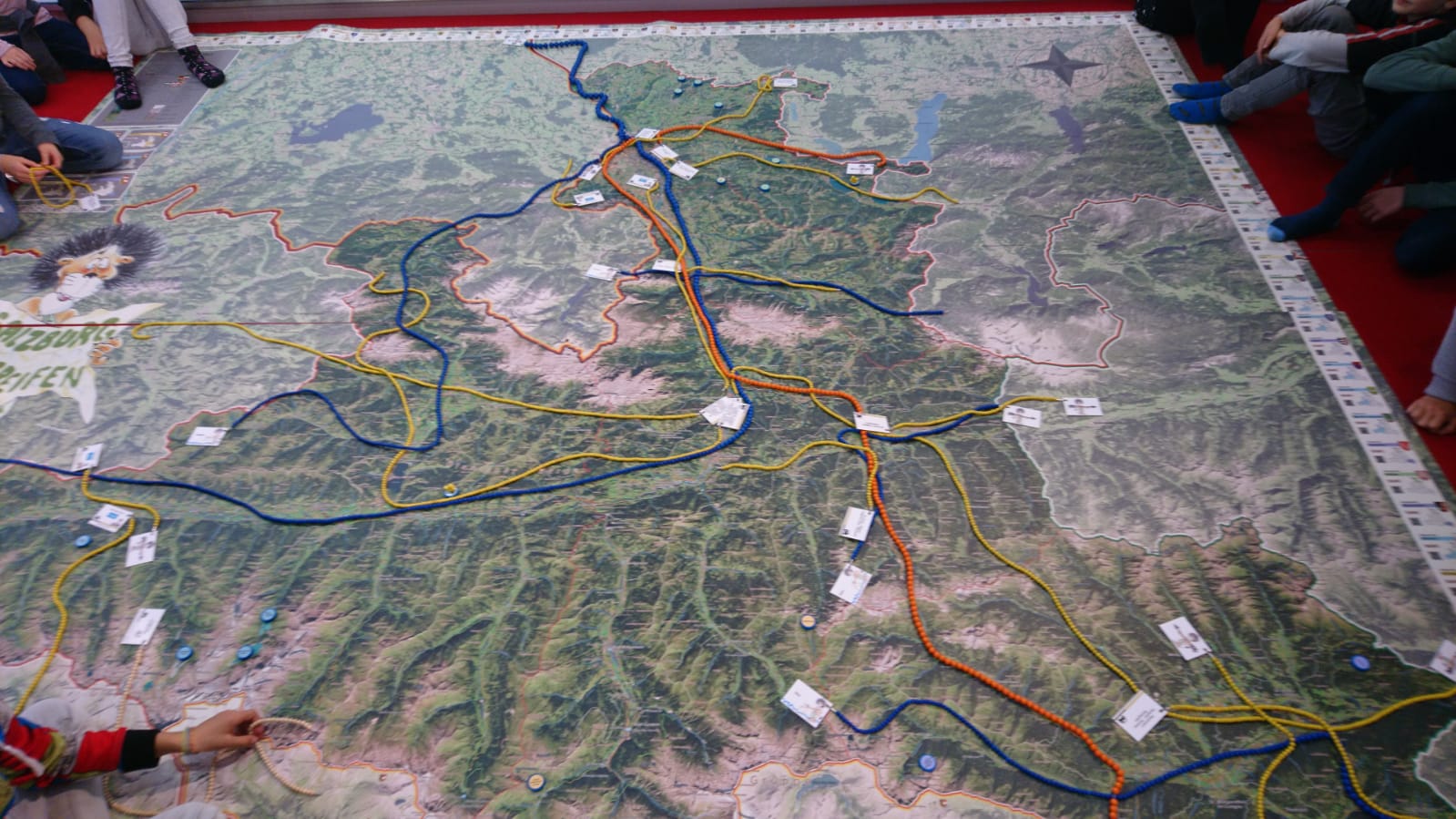 Am Dienstag, den 29.10. machte sich die 1. Klasse auf den Weg in die Stadtbibliothek, um dort „Salzburg zu begreifen“. Statt mit dem Finger auf der Landkarte zu suchen, bewegten wir uns zu Fuß auf einem überdimensionalen Abbild unseres Bundeslandes. Dieses wurde durch das Auslegen von diversen Materialien in eine lebendige 3D Landschaft verwandelt.