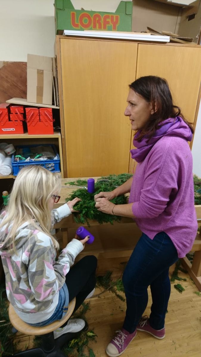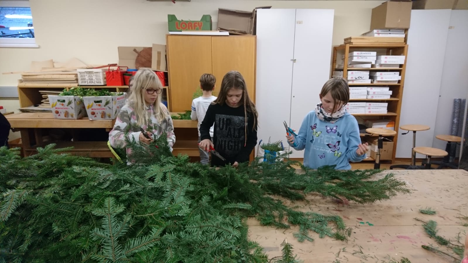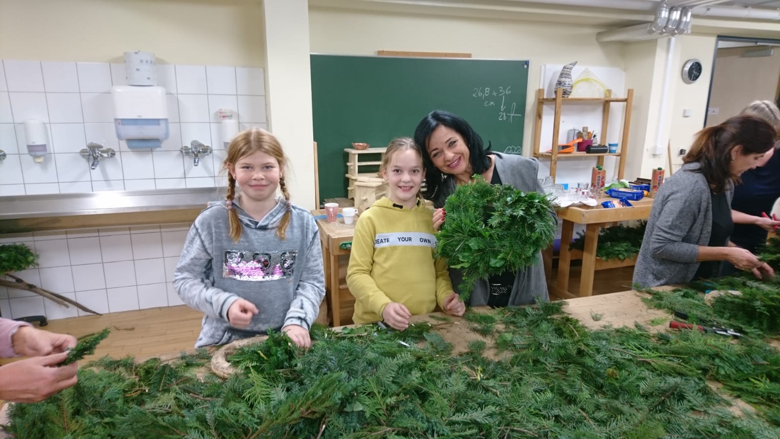 Gemeinsam mit einigen fleißigen Helferinnen und Helfern (Kinder, Eltern und Großeltern) hat das Team der 1.Klasse am 27.11. Adventskränze gebunden. Auf Vorbestellung konnte man sich den gewünschten Adventskranz nach Belieben zusammenstellen und zu fairem Preis erwerben.