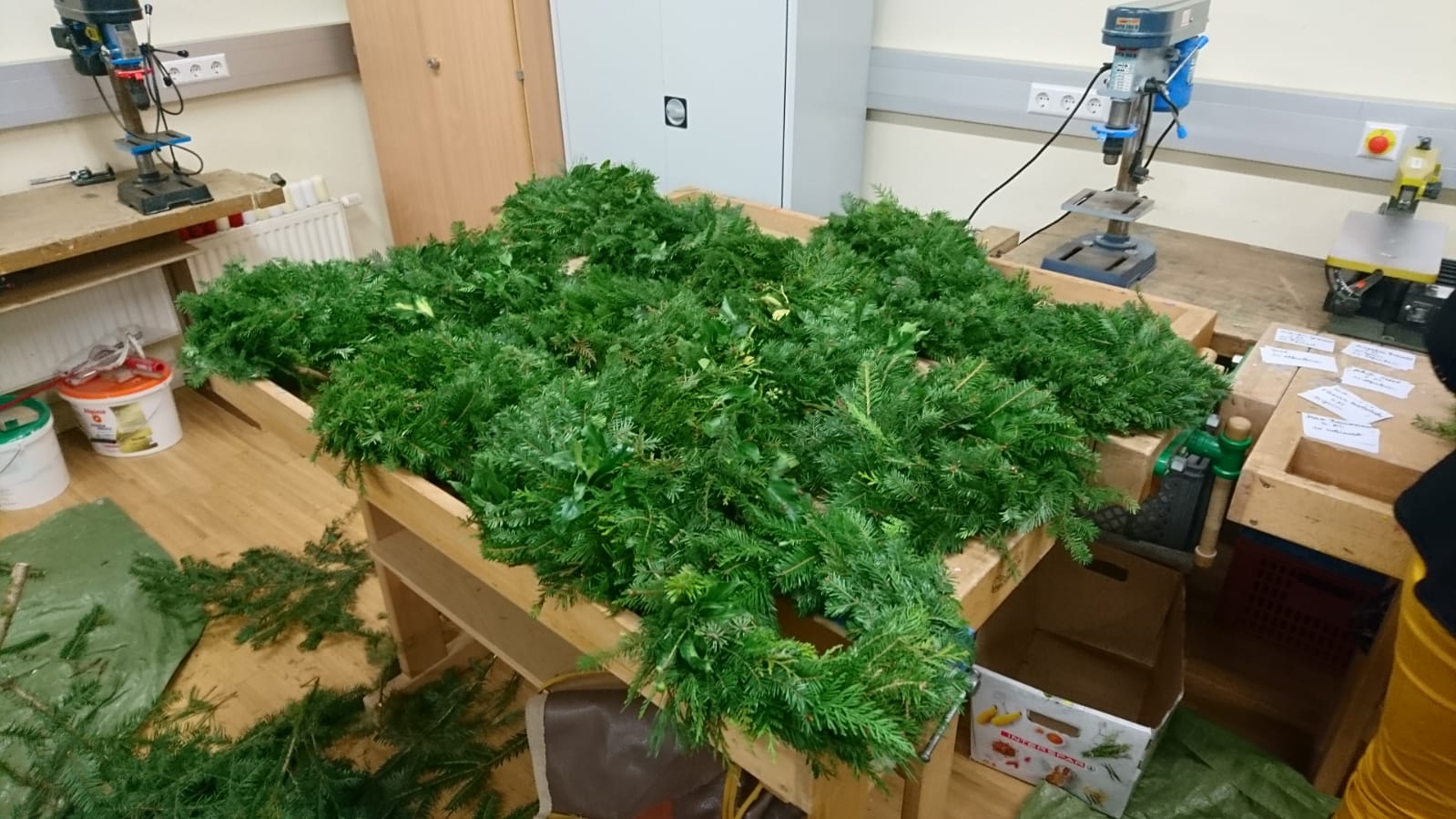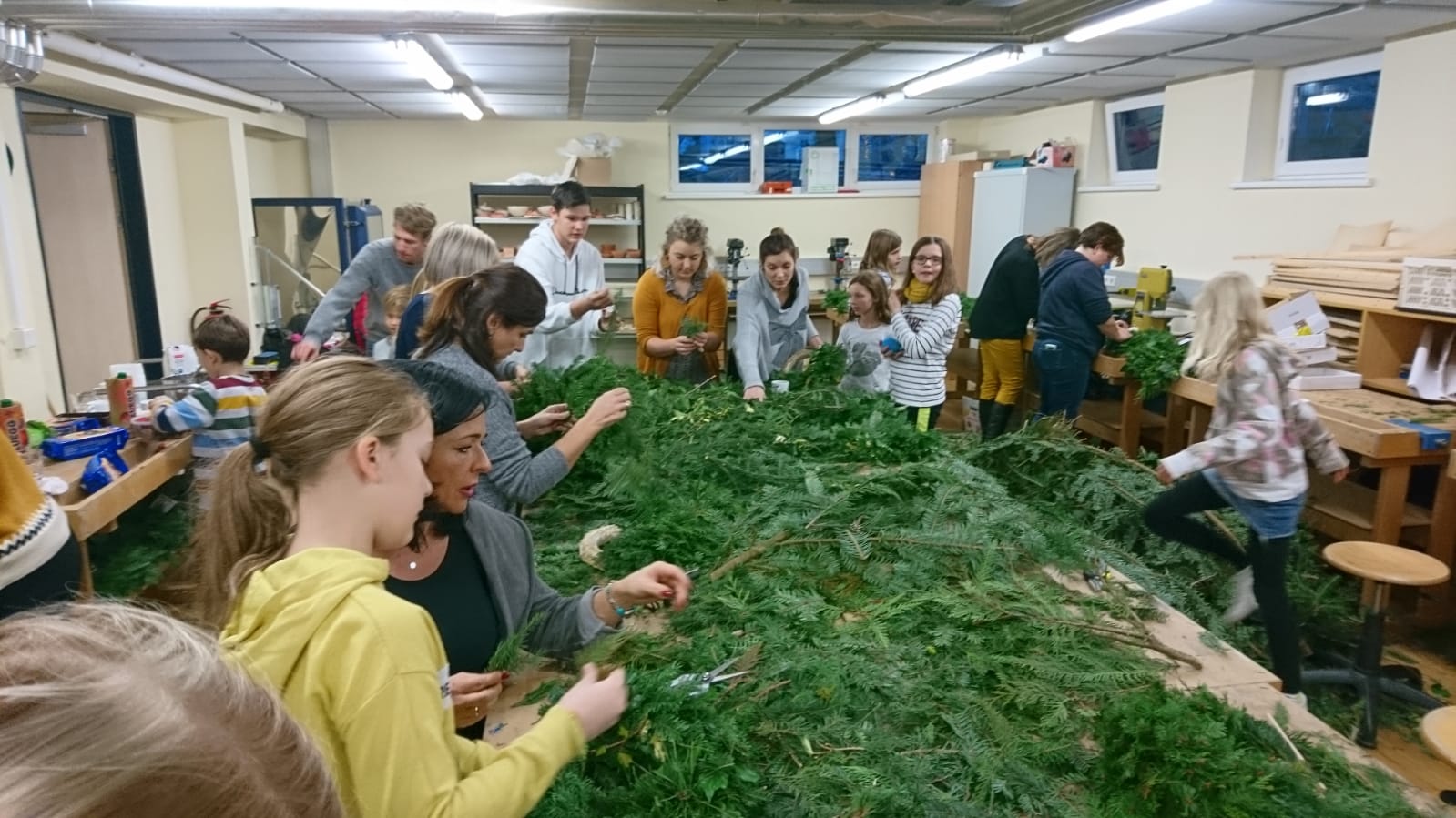 In vorweihnachtlicher Stimmung wurde bis spät in den Abend hineingearbeitet und so blieben am Ende um die 50 Stück wunderbare Adventskränze.