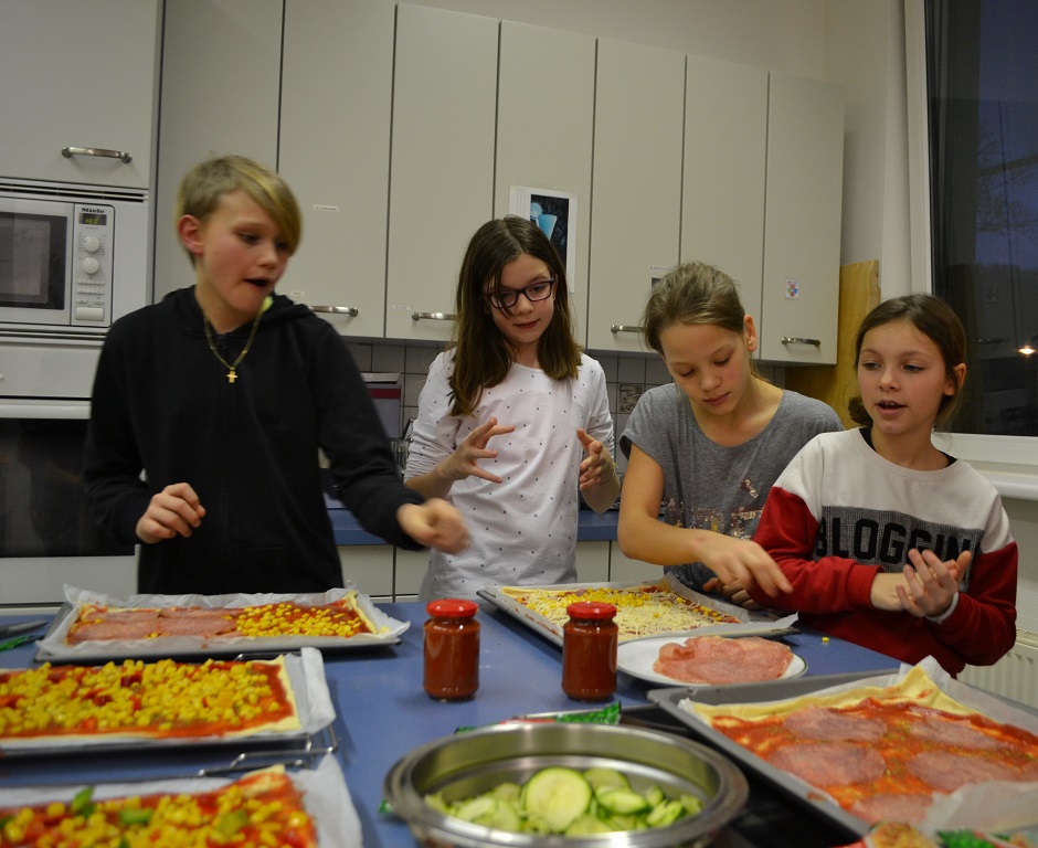 Zuerst wurden Pizzen gebacken, um sich beim gemeinsamen Abendessen auf einen schönen Abend einzustimmen.