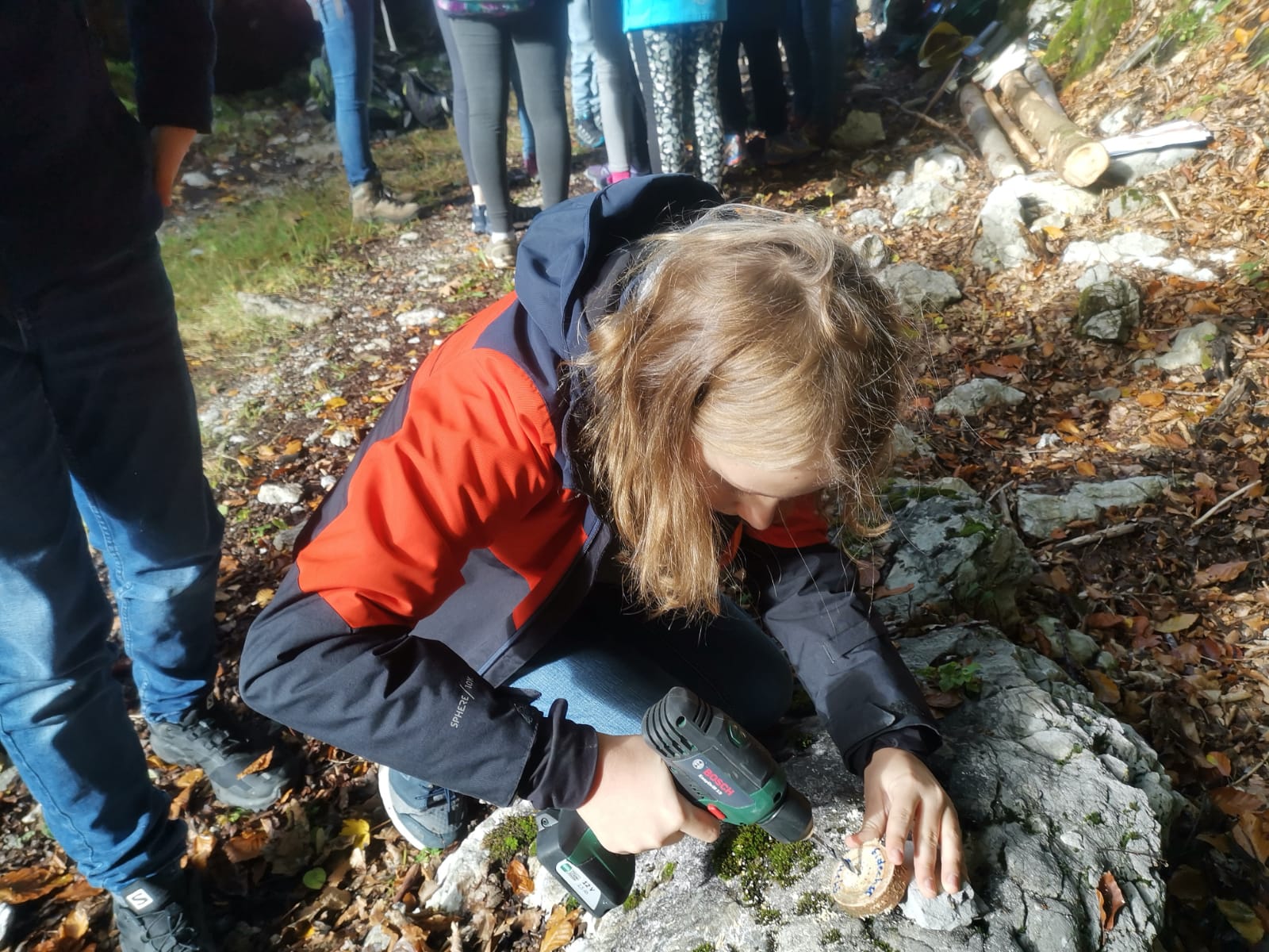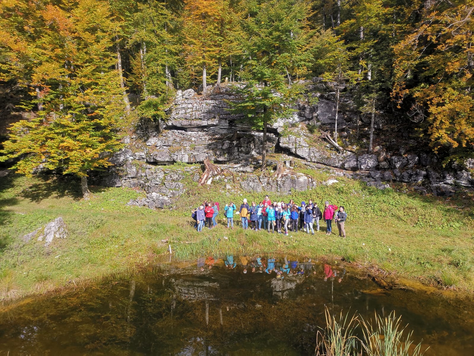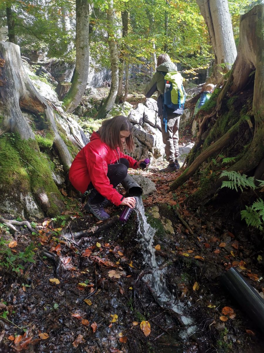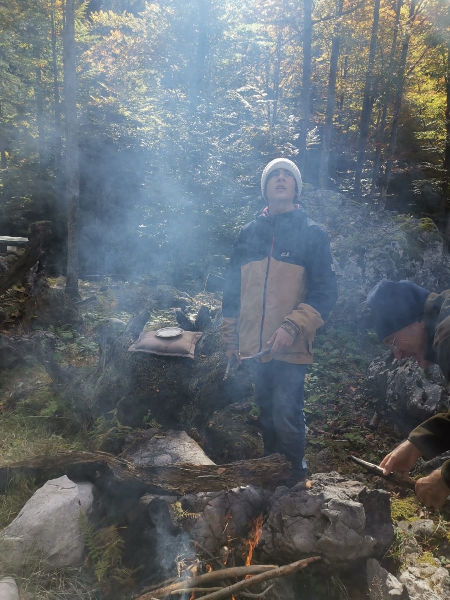 Rechtzeitig hatte der Herbst am 6. Oktober auf golden gedreht: Beim Waldtag der 2. Klasse in der Nähe von St. Koloman erfuhren wir nicht nur Delikates über Tief- und Flachwurzler, Farne und anderes Kraut, nein auch Geschichtliches wurde serviert, denn Nicolas Cage kam vor ein paar Jahren dort vorbei, wo unser Waldpädagoge und unsere Waldpädagogin ihr Anwesen haben. „Die Felsblöcke mit dem Moos drauf, das entspricht genau der Atmosphäre des 14. Jahrhundert. Wunderschön und mystisch“, so wurde uns Cage zitiert und wir konnten für Momente den Wagen vorbeirauschen sehen mit den sechs Pferden und dem Käfig hinten drauf mit der Hexe darin. Später durften wir einen kleinen Scheiterhaufen entzünden und trotz der Feuchtigkeit der vergangen Tage konnten wir schließlich unsere mitgebrachten Köstlichkeiten garen.