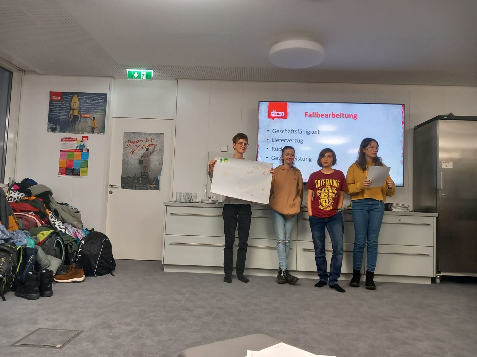 Beim Workshop „shopping guide“ im Dezember stand das Verhalten als Konsumentinnen und Konsumenten im Vordergrund. Dabei durften die Schülerinnen und Schüler nach einer Inputphase zu den Themen Geschäftsfähigkeit, Lieferverzug, Rücktritt und Gewährleistung an Fallbeispielen arbeiten und ihre Ergebnisse präsentieren. Für diesen Teil war auch eine Juristin anwesend, um offene Fragen genau zu klären.