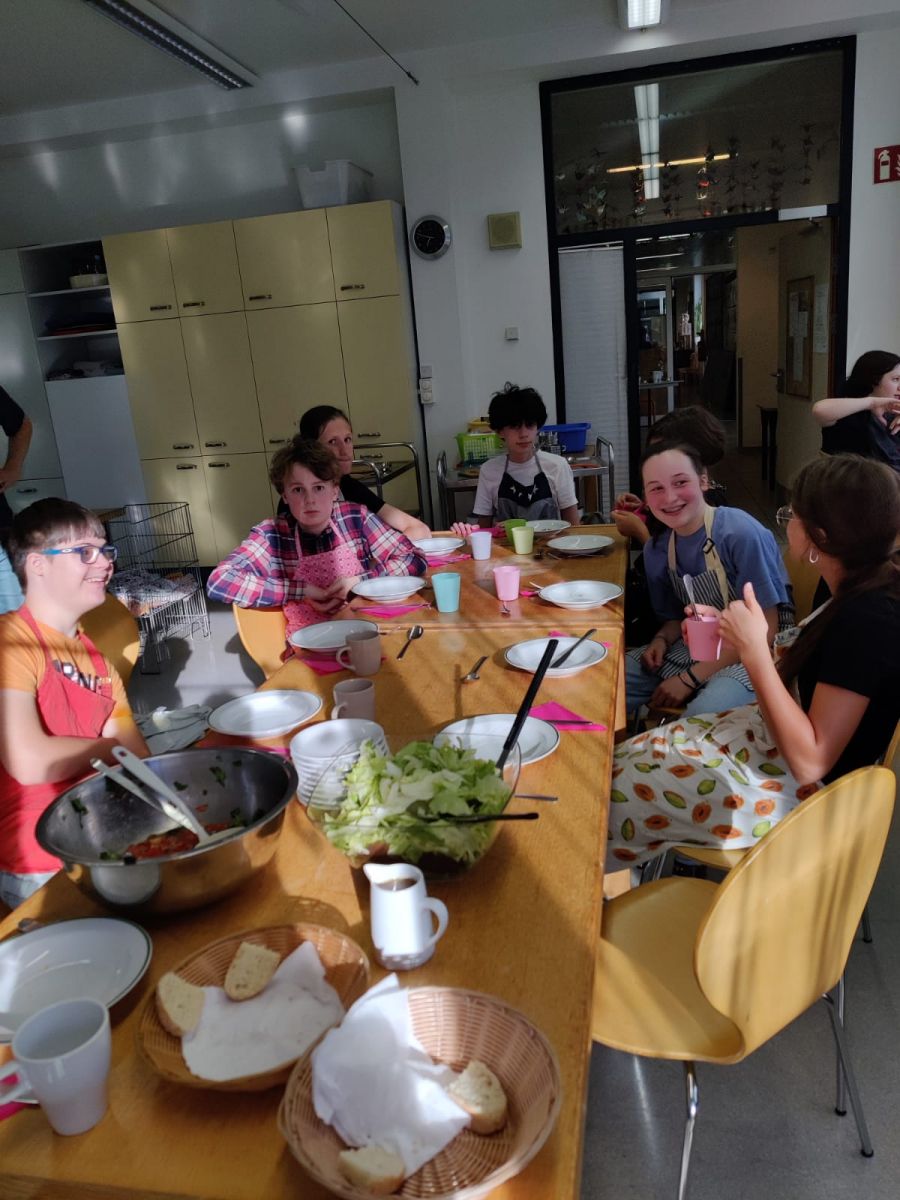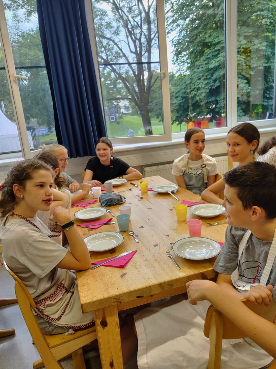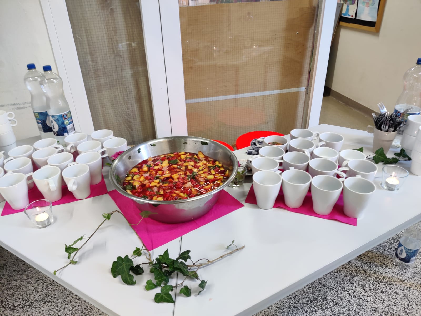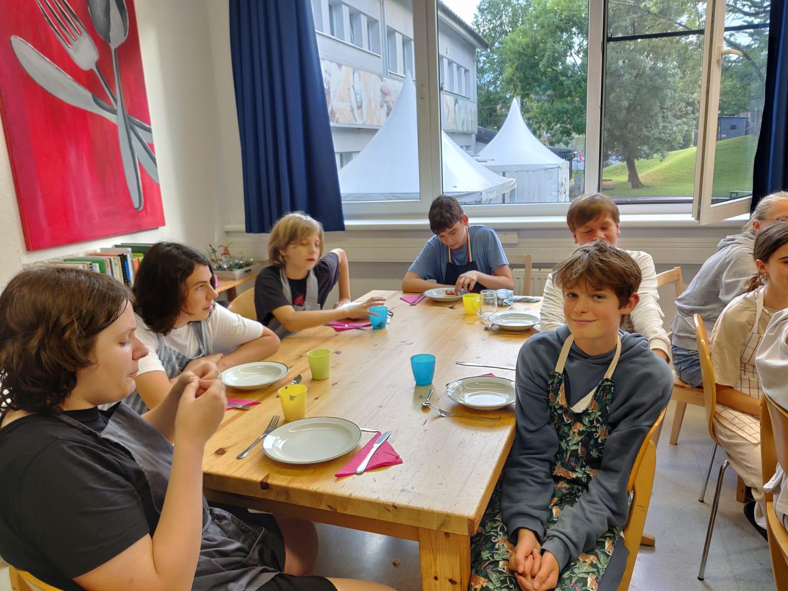 Während dem Schuljahr konnten die Schülerinnen und Schüler der 3. Klasse bereits an ihren Fähigkeiten zum Kochen und Servieren im Rahmen des Unterrichts im Fach Ernährung und Haushalt arbeiten. Am Donnerstag in der vorletzten Schulwoche wurden die Eltern mit einem mehrgängigen Menü verwöhnt. Davor gab es noch einen fruchtigen Aperitif zum Empfang.