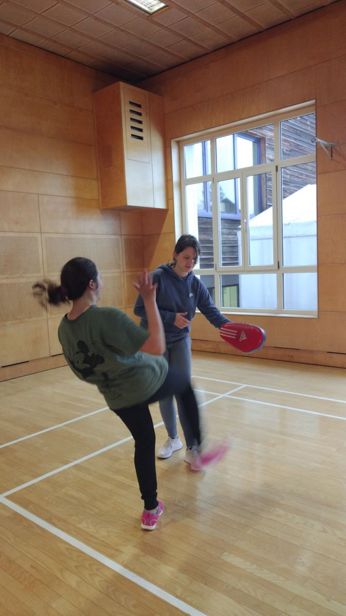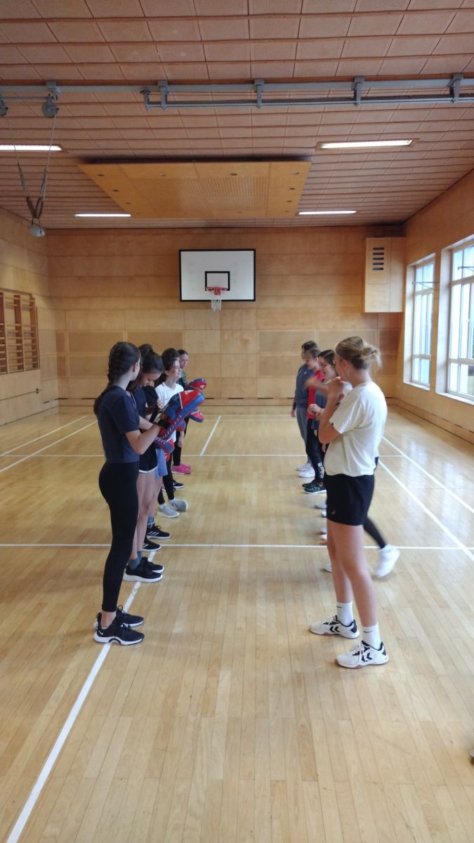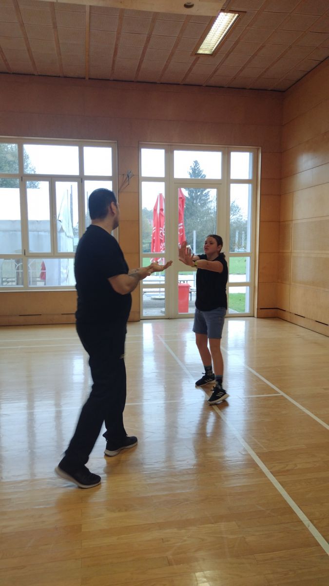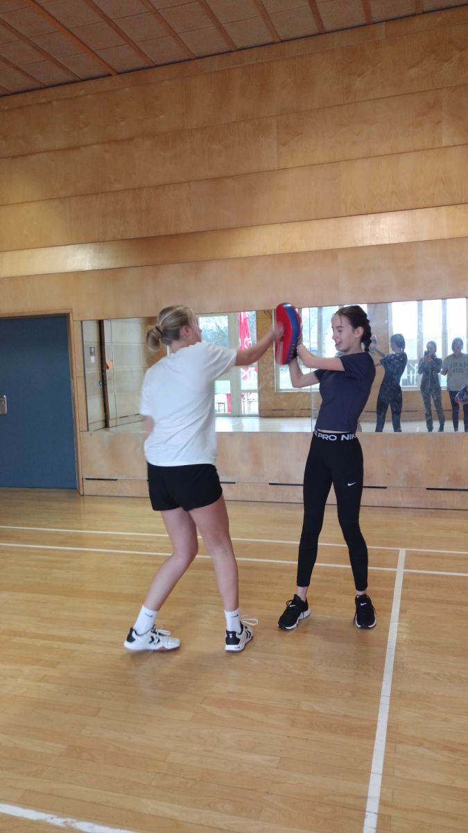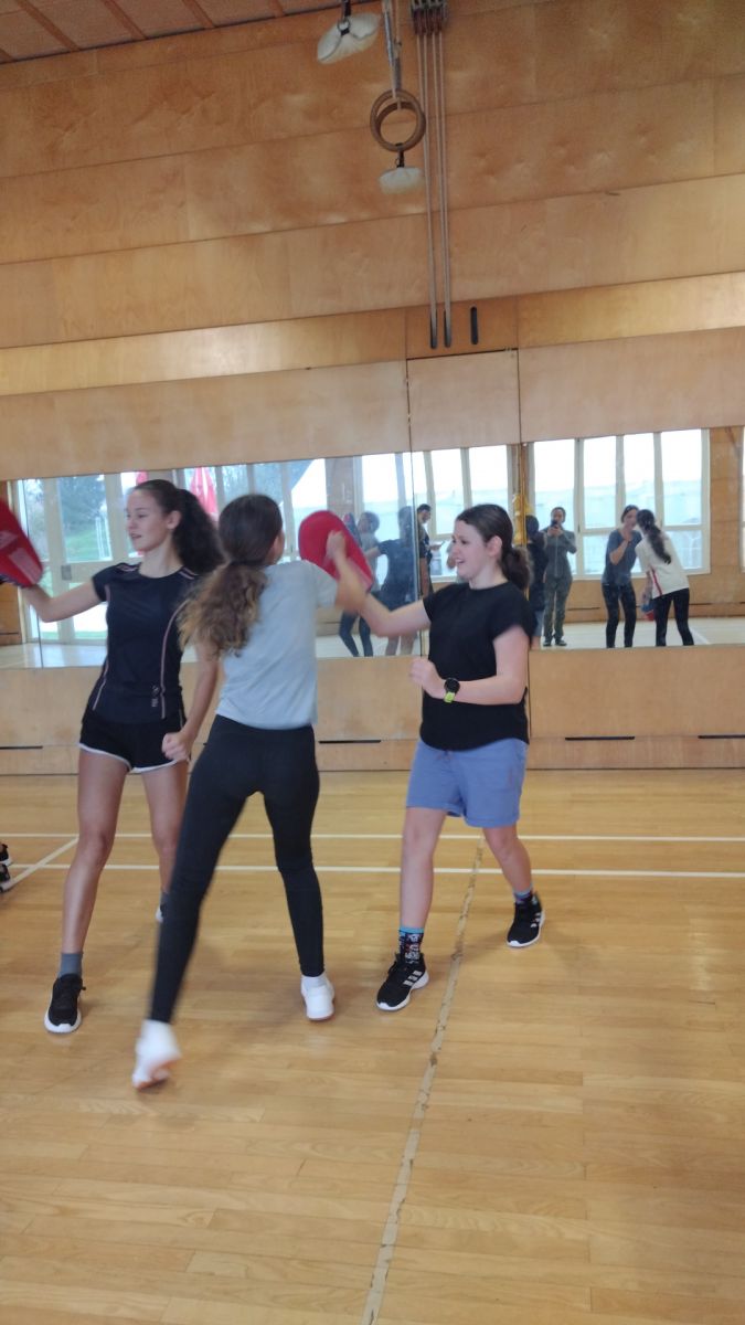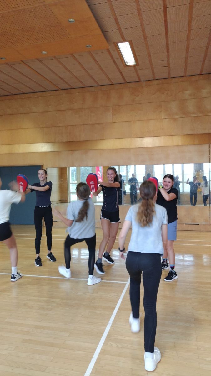 Marko Šulejić von der ARTMA Akademie in Salzburg war bei uns in der Mittelschule zu Besuch und hat mit den Mädchen der 4. Klasse im Rahmen des Sportunterrichts einen Workshop zum Schwerpunkt Selbstverteidigung abgehalten. Dazu gab es eine theoretische Schulung zur rechtlichen Lage und des Selbstschutzkonzeptes. Auch mögliche Strategien zur Verhinderung von Gefahren im Vorfeld, um auf Situationen deeskalierend reagieren zu können, wurden aufgezeigt und gemeinsam besprochen. Der größte Anteil des Workshops waren dann praktische Übungen, wo allen Schülerinnen gezeigt wurde, wie sie einfache Angriffe abwehren und sich aus Griffen befreien können. Diese wurden dann im Anschluss in Partnerübungen trainiert und auch wenn es mitunter eine sehr lustige Stimmung war, war es wichtig die Möglichkeit zur Selbstverteidigung gezeigt zu bekommen. Bei der Schlagschulung mit Utensilien durften sie sich dann auspowern und ihre Ausdauer unter Beweis stellen. Abschließend bekam jede Schülerin noch eine Teilnahmeurkunde.