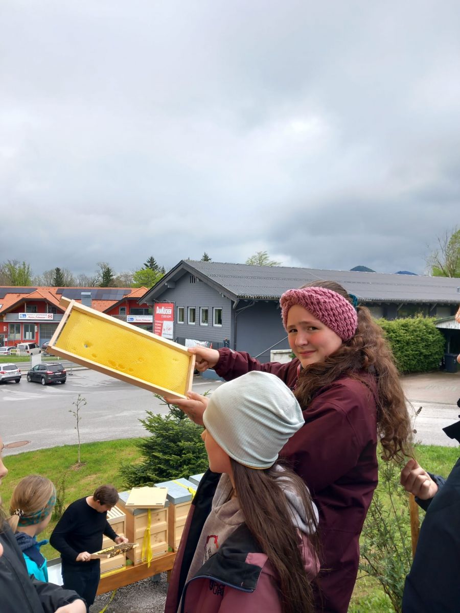 Die 2. Klasse besuchte am 25.04. den Imkerhof in Koppl. Dabei lernten die Schüler*innen interessante Details über die Bienen, den Honig und die Arbeit der Imkerei. Es gab auch eine Honigverkostung. Das Highlight war der Besuch eines Bienenvolkes, bei dem auch Honig direkt aus der Wabe gekostet werden konnte.