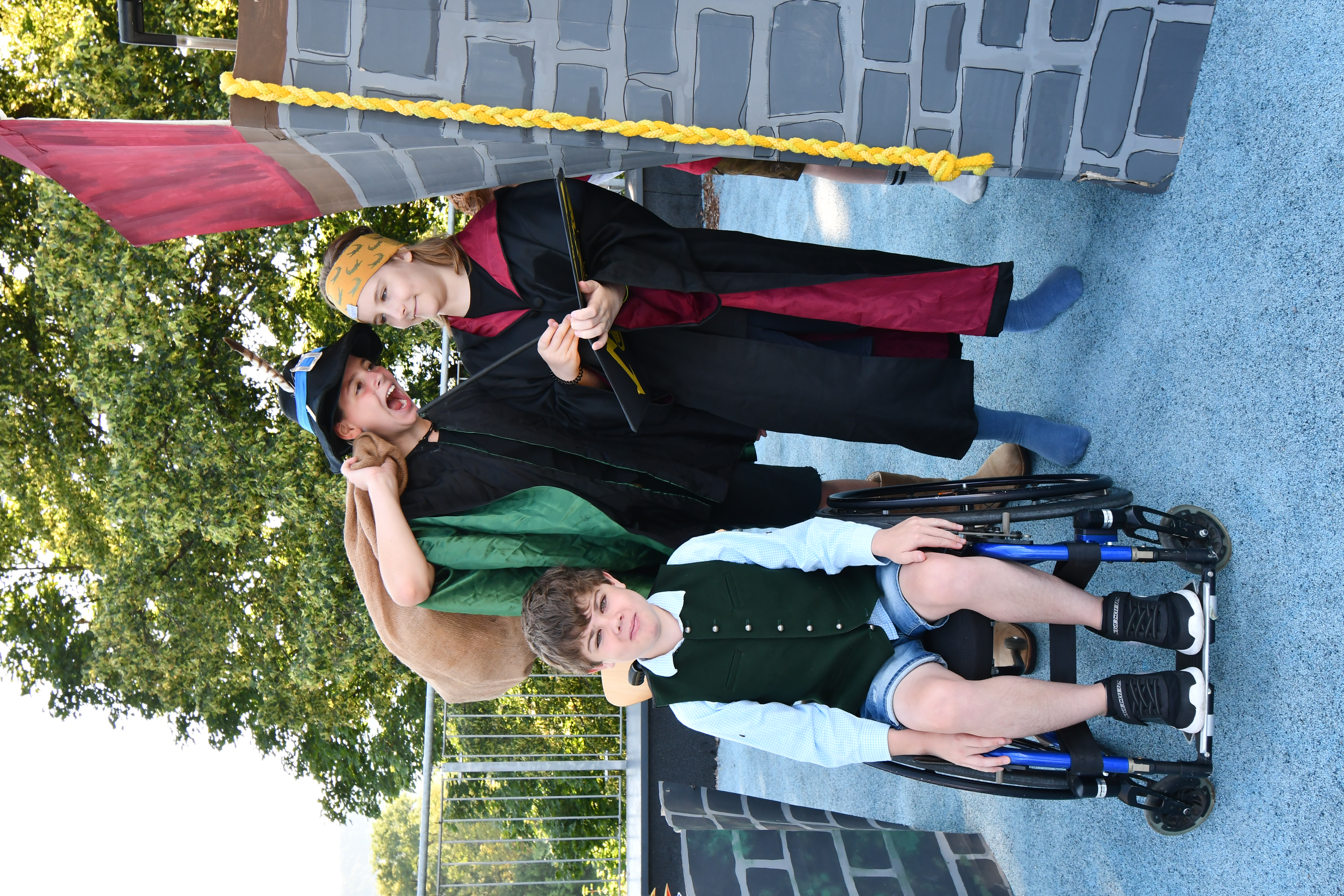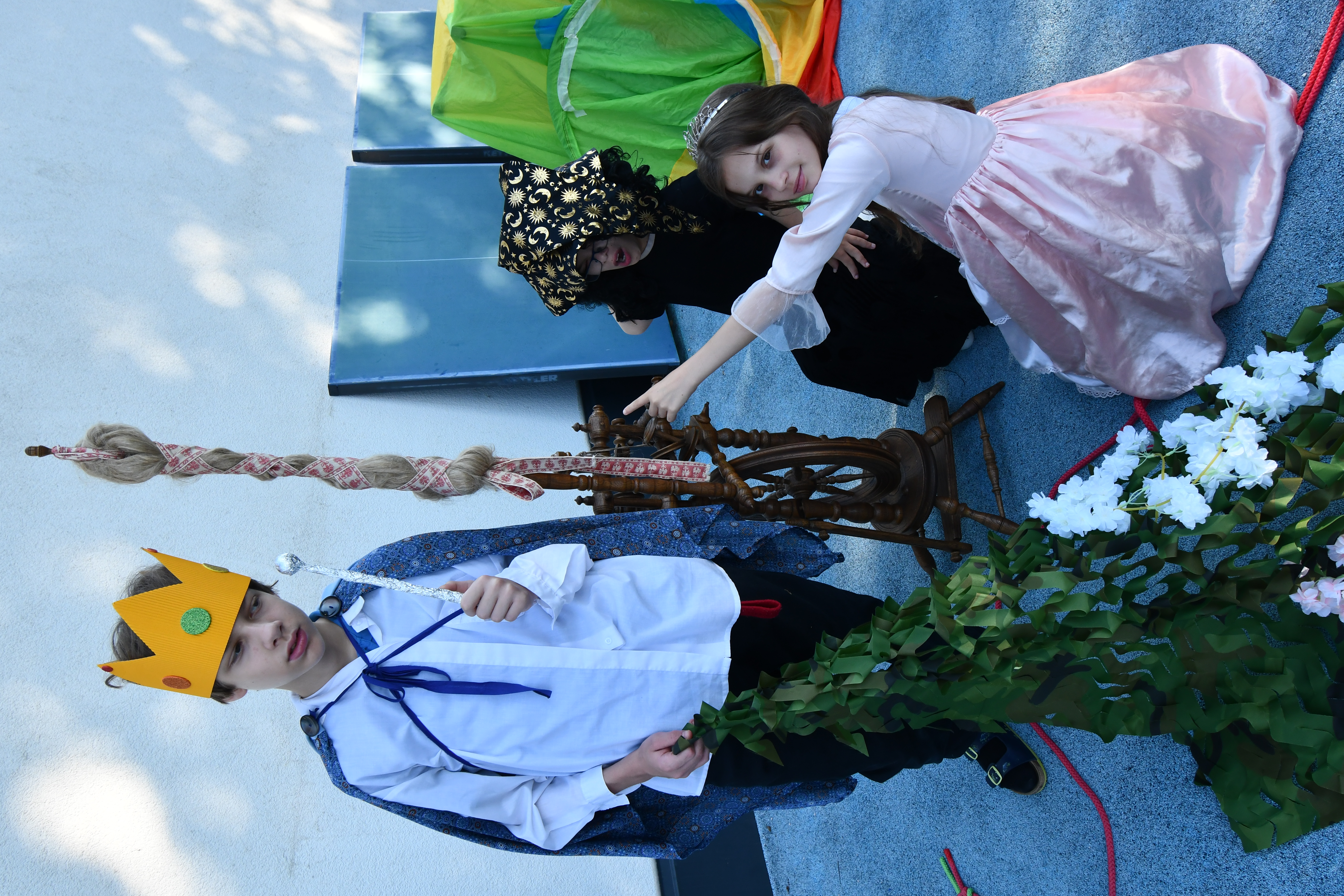 Wir haben Eltern und SchülerInnen eingeladen auf eine spannende Reise durch die Märchenwelt. Gemeinsam mit unserem Publikum sind wir eingetaucht in die Suche nach dem Küchenjungen aus Dornröschen, der seiner Strafe durch den Küchenchef entgangen ist, da das ganze Schloss in einen 100jährigen tiefen Schlaf gefallen ist. Auf der Suche nach dem „Watschenjungen“ aus Dornröschen reisten die beiden Hofkommissare Gustav 1 und Gustav 2 mittels Hypermärchenraumsprung durch das Märchen Raum – Zeit Kontinuum in verschiedene Märchen.