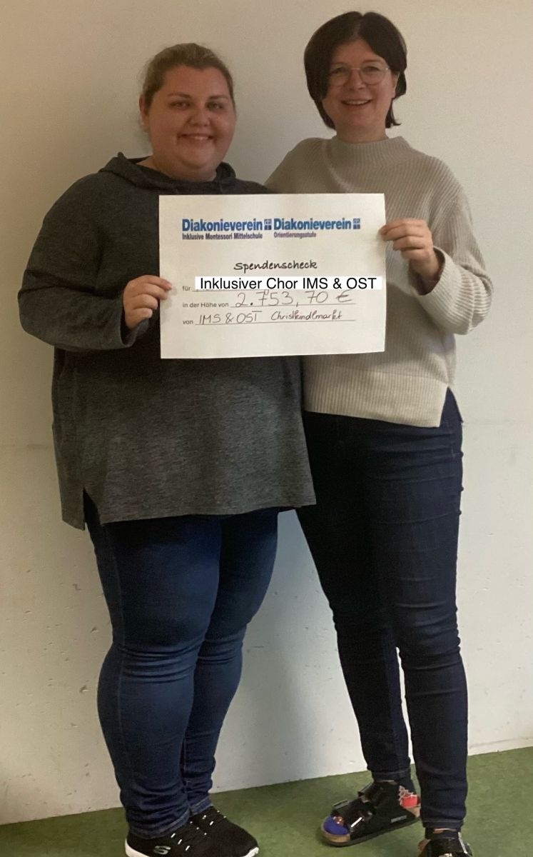 Der Stand war sehr erfolgreich. Der Erlös aus den drei Tagen am Christkindlmarkt fließt heuer in das Schulmusical, das der Inklusive Chor der IMS und OST in diesem Jahr auf die Beine stellt. Beim Schulparlament konnte dann ein Scheck in der Höhe von 2.753, 70 € an Maria überreicht werden.