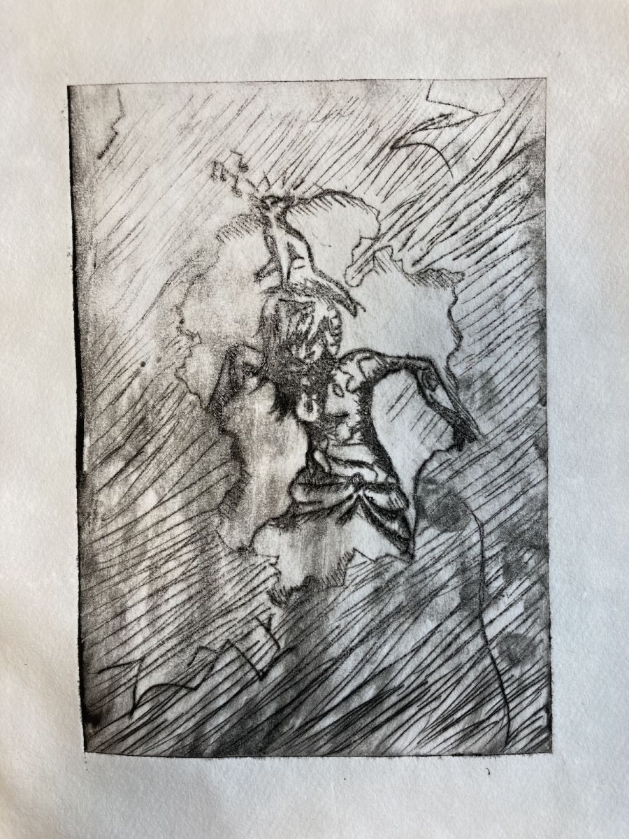 Die Schüler:innen der 5M beschäftigten sich im Jänner mit Druckgrafik. Mit Hilfe der Technik der Kaltnadelradierung erarbeiteten sie Illustrationen zu Morden aus Geschichten von Edgar Ellen Poe.