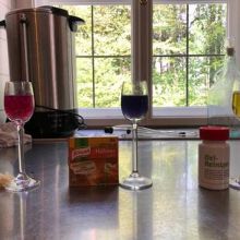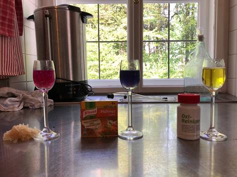 Zum neuen Thema Säuren und Basen sind die Schüler (7M) instruiert worden, selbst ein Experiment zur Wirkungsweise von Indikatoren (in diesem Fall mit Blaukrautsaft) durchzuführen.