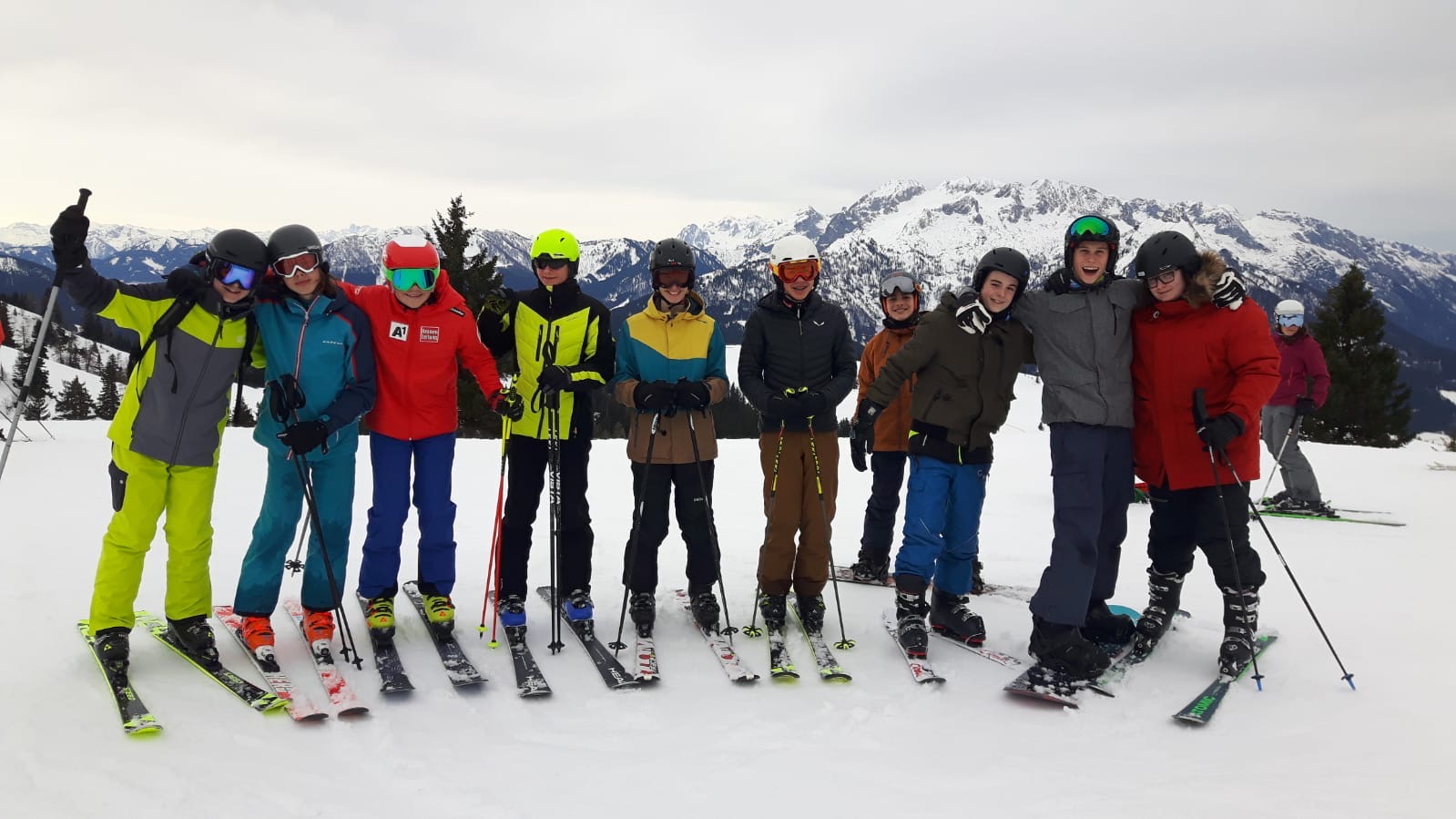 Voller Tatendrang und Vorfreude startet die SchülerInnen des MORG zum Skitag. Trotz der nicht ganz so tollen Bedingungen hatten alle TeilnehmerInnen gute Laune.