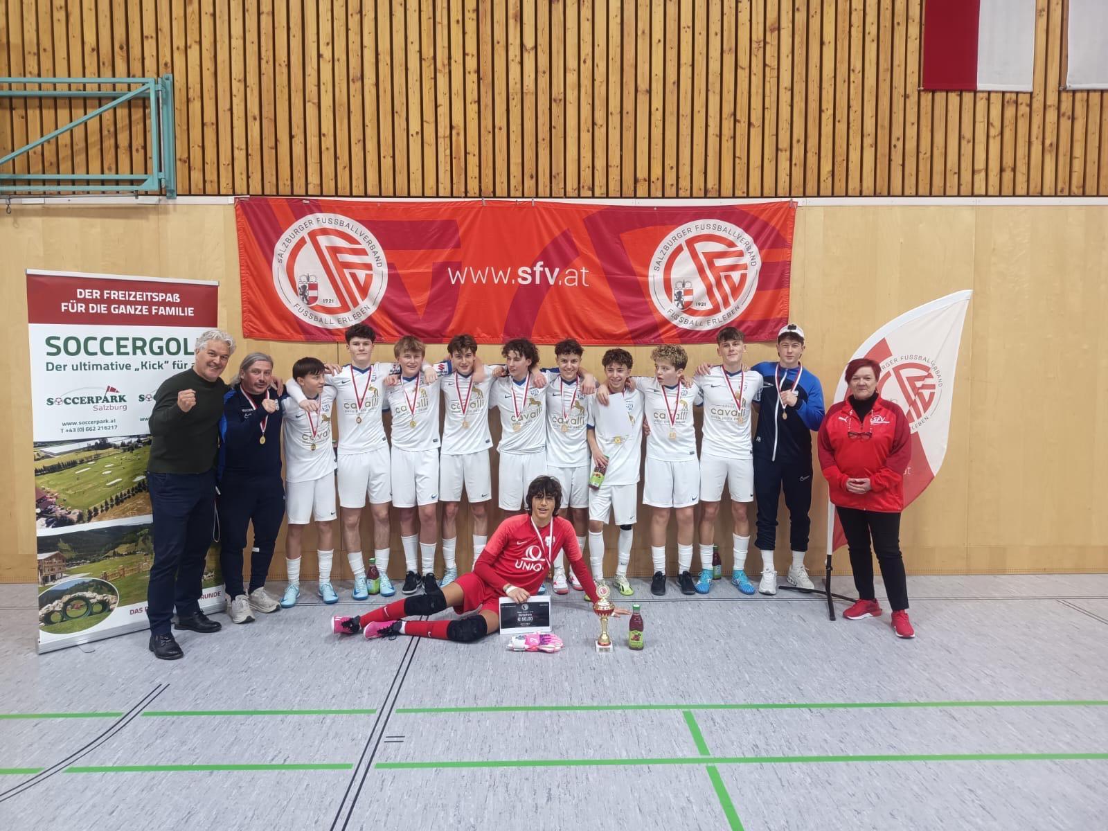Bei der U15 Futsal-Landesmeisterschaft in Rif haben sich Paul, Lolo und Leon mit dem SV Grödig den Titel gesichert! Im Finale wurde die SG Gneis/Anif (mit unserem MORG-Schüler Leo) im 6-Meter-Schießen bezwungen.