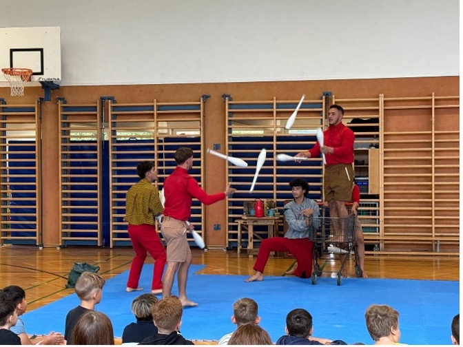 Mit beeindruckenden Zirkus-Kunststücken wurden vergangenen Dienstag an die 200 Schülerinnen und Schüler am Montessori Oberstufenrealgymnasium in Grödig begeistert.