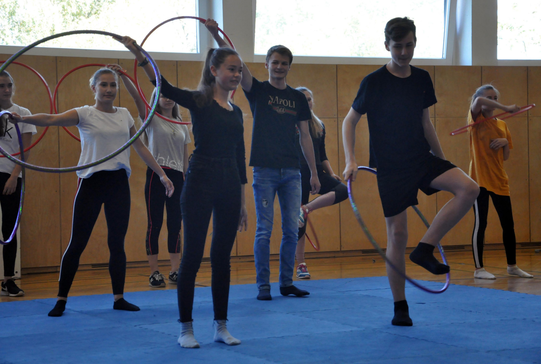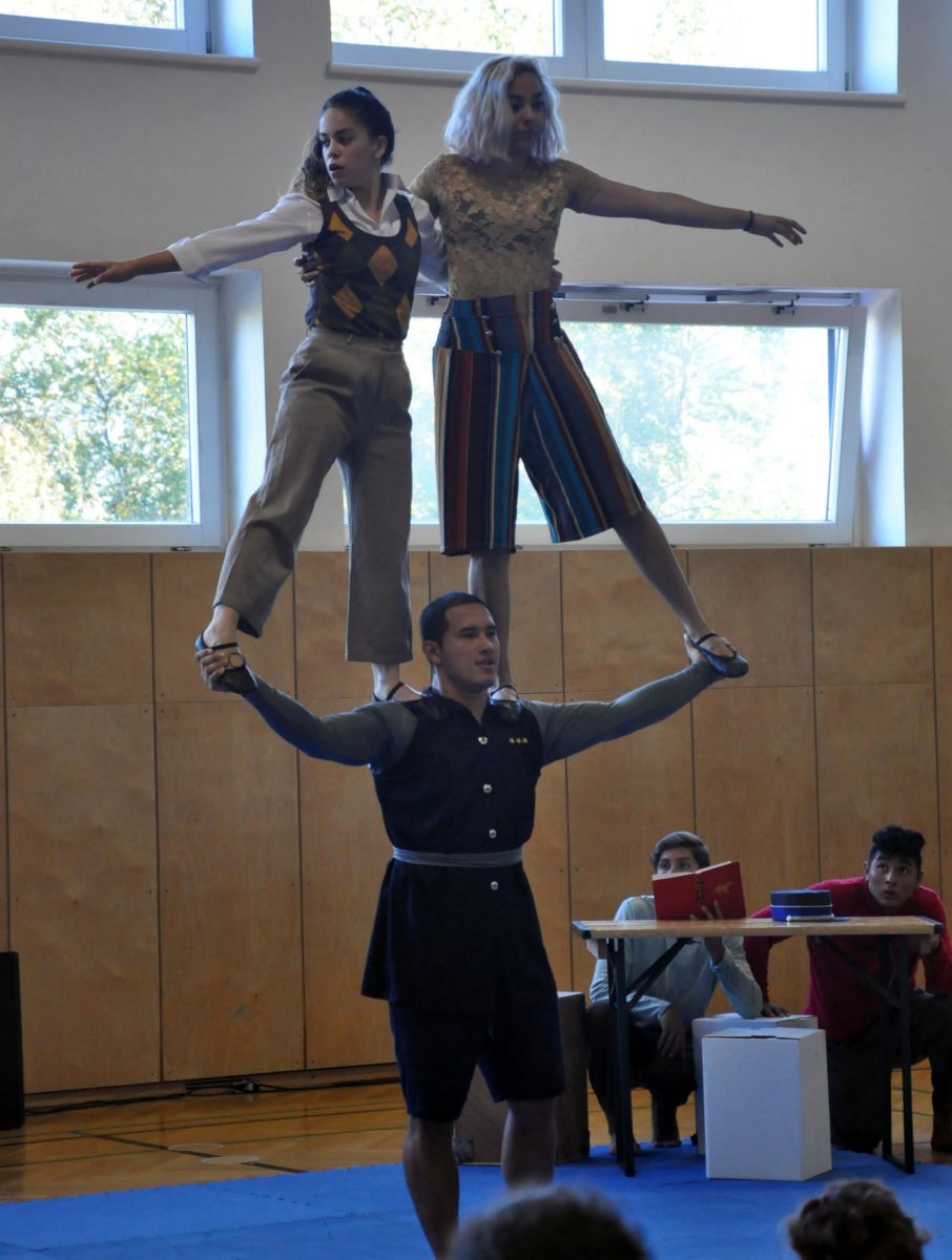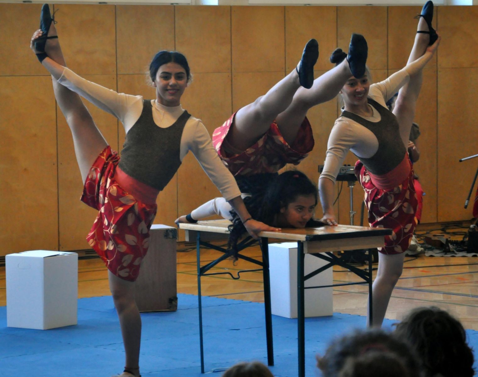 Der Jugendzirkus Circo Fantazztico aus Costa Rica beeindruckte am Dienstag, 15.10.2019 mit seiner aktuellen Akrobatikshow „RONDOLAND“ die SchülerInnen des MORG Grödig.