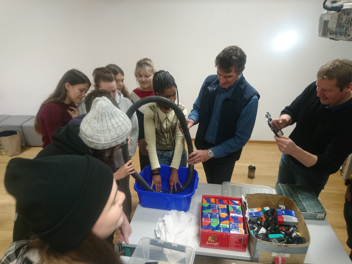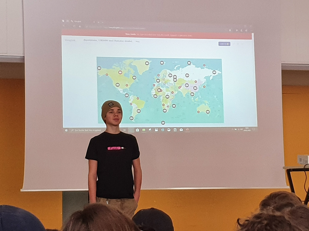 Alle Jugendlichen waren mit großer Begeisterung dabei und haben am letzten Tag in der Aula der Schule die Ergebnisse ihrer 2 ½-tägigen Arbeit den Mitschülerinnen und –schülern präsentiert.