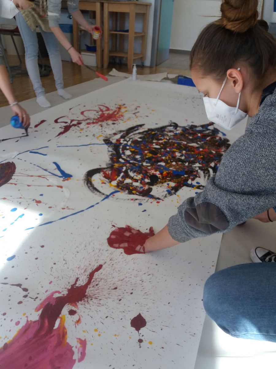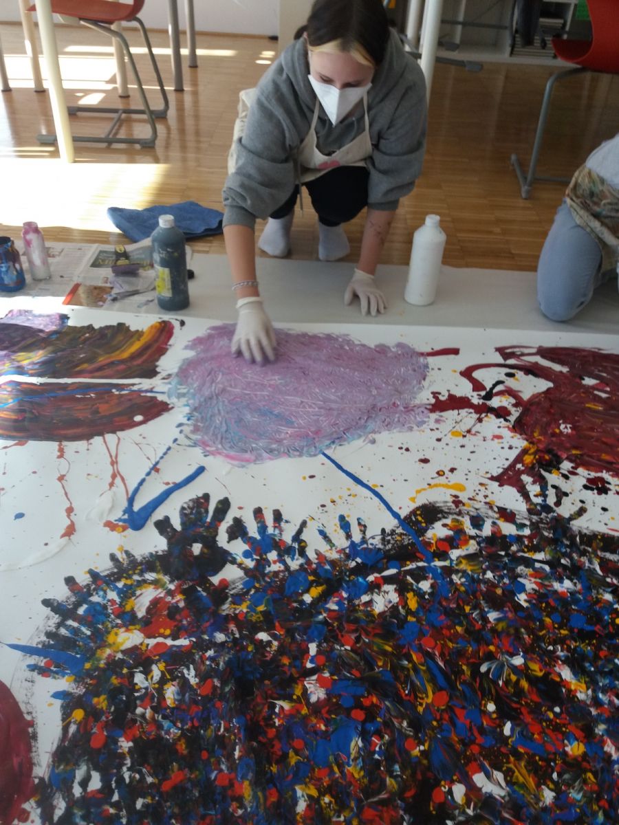 Die 6M hat sich eingehend mit dem Thema „Actionpainting“ im BE Unterricht auseinandergesetzt und konnte sich nicht nur theoretisch, sondern auch praktisch in dieses Thema vertiefen.