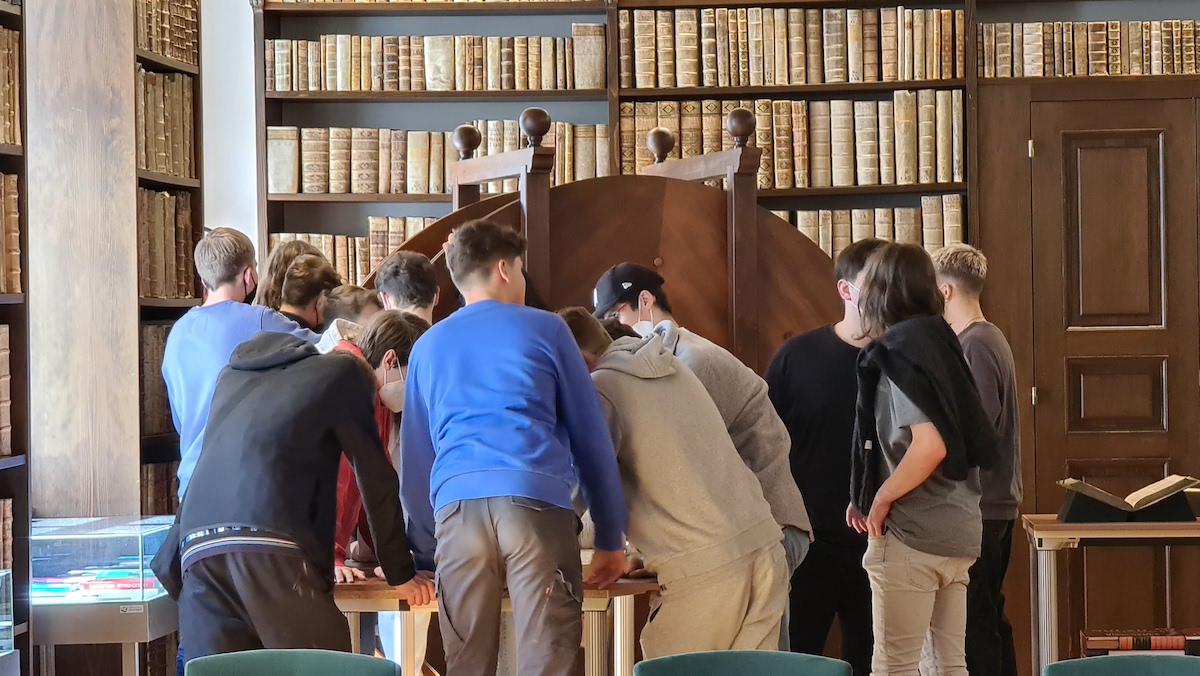 Informationen über Benützungs- und Ausleihmodalitäten. Besonders beeindruckend war für die meisten die historische Bibliotheksaula mit den alten Büchern und dem Fürstaller-Globus. Einige Schülerinnen und Schüler holten sich auch gleich ihren Bibliotheksausweis für die UB ab und sind motiviert mit den Arbeiten an ihrer VWA zu beginnen.