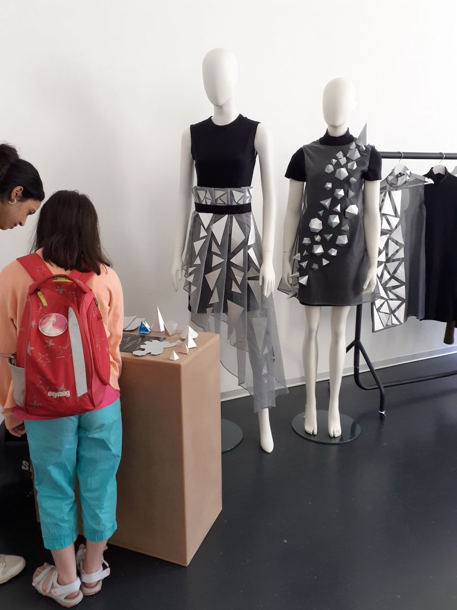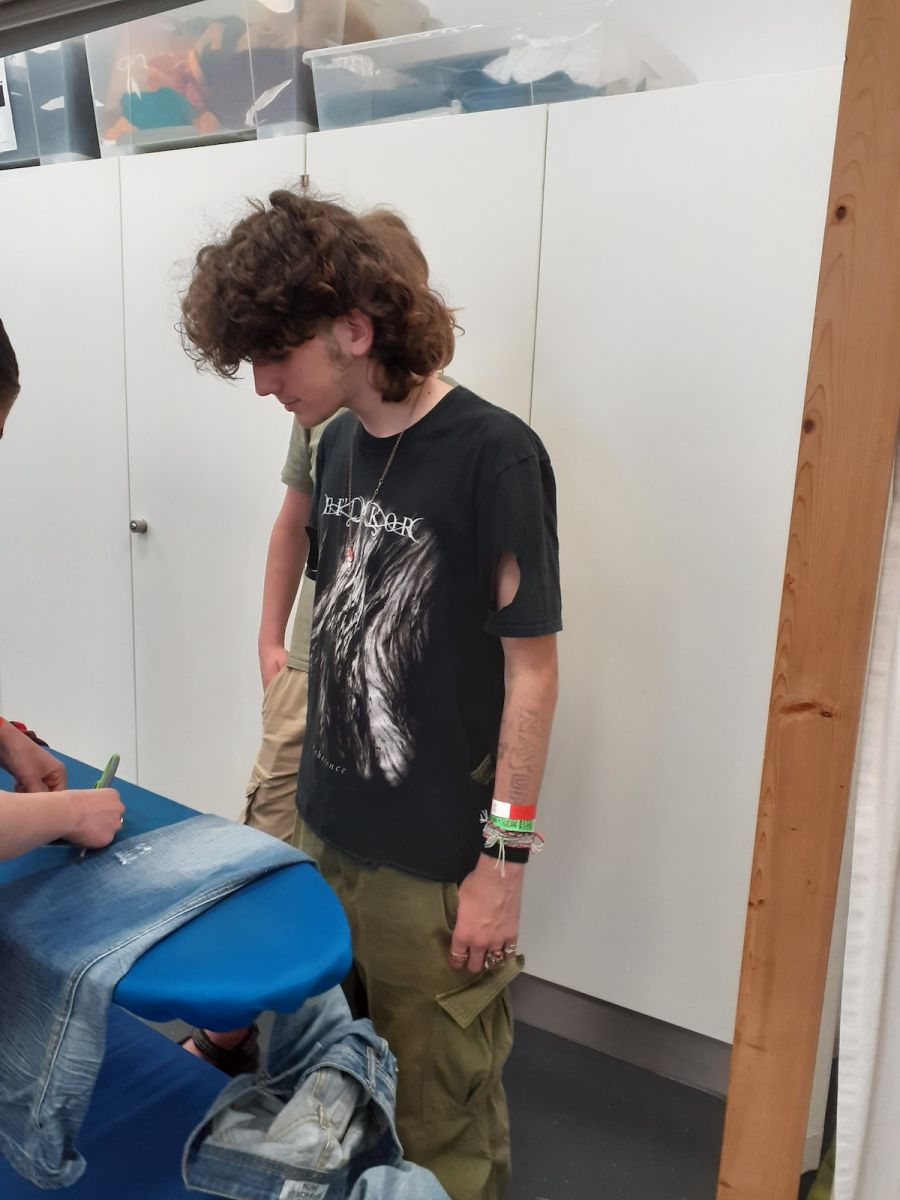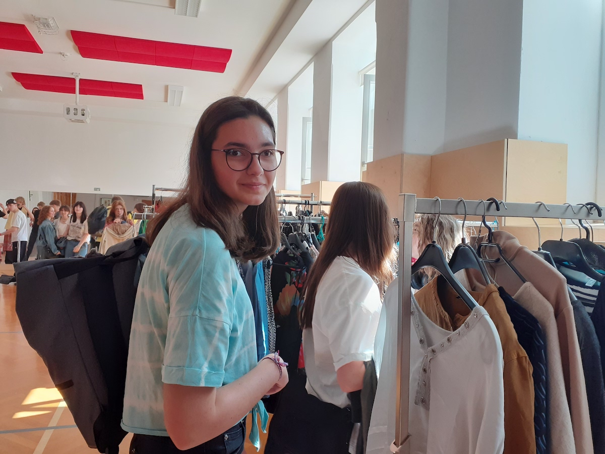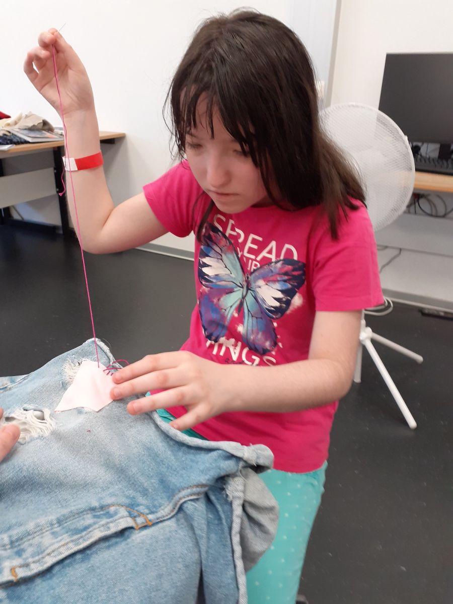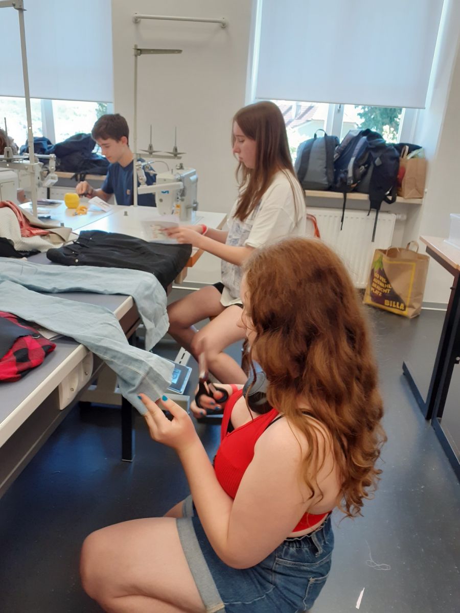Am Nachmittag wurden verschiedene Möglichkeiten zum Reparieren von Kleidung vorgezeigt. Die Lernenden konnten dies anschließend an Kleidungsstücken selbst ausprobieren. Es sind kreative neue Kleidungsstücke entstanden. Die Schülerinnen und Schüler möchten in Zukunft bewusster einkaufen.