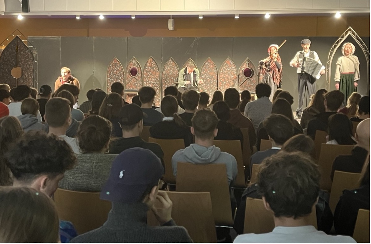 On November 17, THE AMERICAN DRAMA GROUP EUROPE revisited our school. Producer Gunnar Kuehn assured us that this show was the best they had in their repertoire – and they certainly delivered. All our classes as well as the fourth-grade students of the IMS witnessed a brilliant rendition of Charles Dickens’ A Christmas Carol. The story taught us that even the most entrenched Grinch can be enchanted by the magic of Christmas.