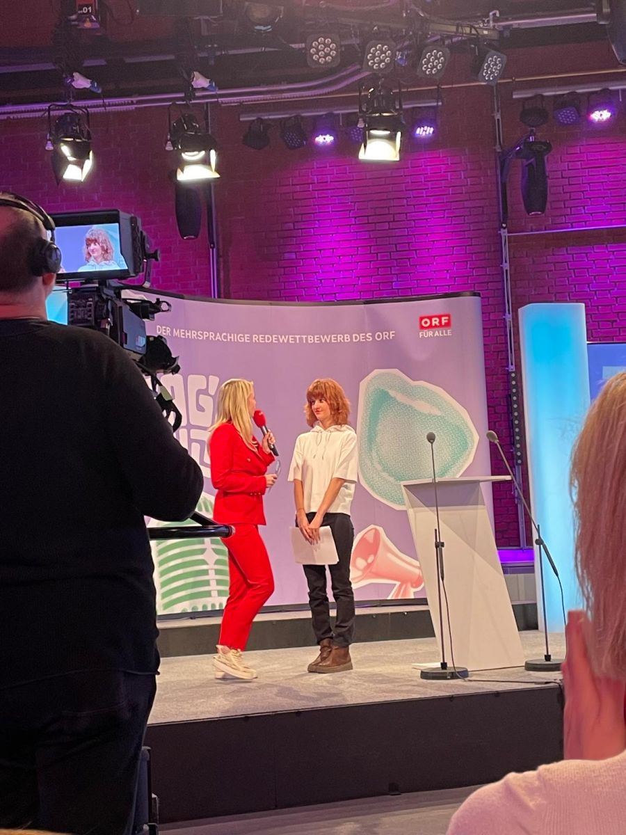 Im April durfte ich an der Finalrunde des mehrsprachigen Redewettbewerb "Sag's Multi" teilnehmen. Dem vorausgegangen sind eine Vor- und eine Hauptrunde bei der bereits zwei Reden per Video eingereicht werden mussten. Bei der Finalrunde trat ich im Landesstudio in Linz vor einer Jury und Publikum an und sprach zum Thema "Wir - unser(e) Leben, unsere Vielfalt, unsere Zukunft“. Es war eine unfassbar spannende und einmalige Erfahrung, durch die ich viel gelernt habe und die mir mit Sicherheit noch lange in Erinnerung bleiben wird. Julia Santner