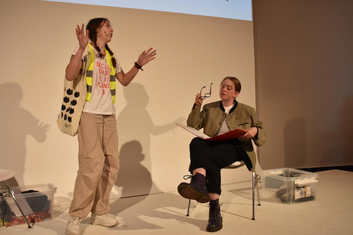 Maja und ich waren am ersten Wettbewerbstag in der Kategorie Neues Sprachrohr an der Reihe und haben wieder unsere Minidramen zu gesellschaftlichen Themen und Generationenkonflikten auf die Bühne gebracht. Unser Auftritt war wie auch beim Landesfinale ein großer Erfolg und wir haben es auf der Bühne abermals sehr genossen! Ein sehr spannender Anlass war die Siegerehrung: hierbei erschien auch Jugendstaatsekretärin Claudia Plakolm und überreichte den Sieger*innen die Urkunden. Maja und ich holten uns in unserer Kategorie den ersten Platz! Die Begeisterung war riesig und wir durften unsere Minidramen noch einmal aufführen.