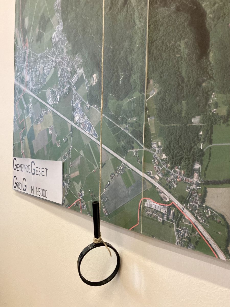 - 1:5000, 1:1000, Pläne von Grödig kaschiert auf Foamboard mit Lupen versehen
