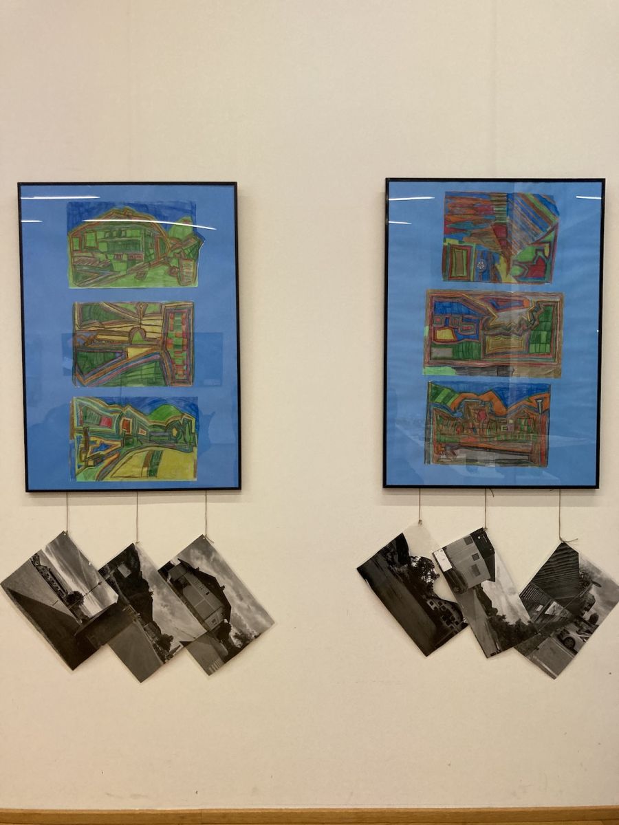 - Sechs Zeichnungen einer Inklusionsschülerin von Ansichten jedes bearbeiteten Ortes