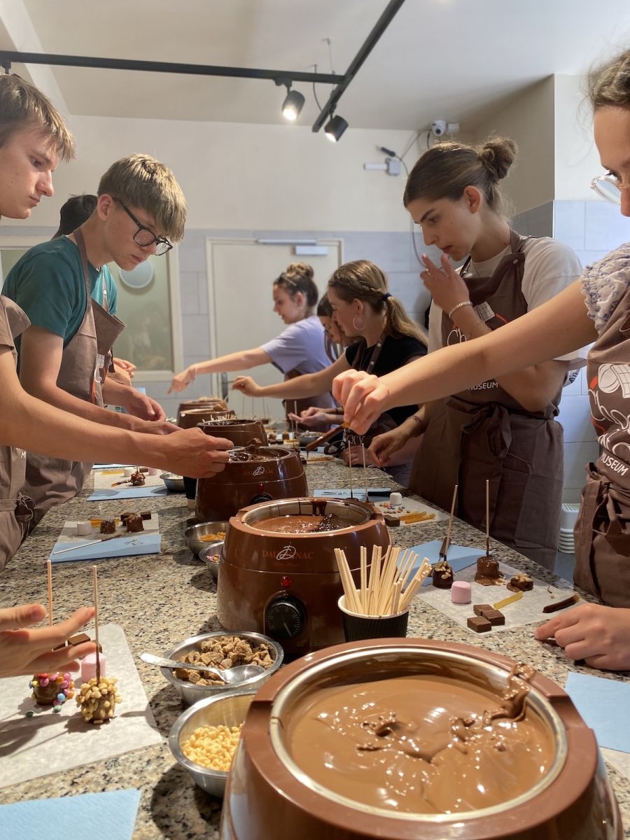 Unsere Reise begann mit einem Besuch der beeindruckenden Hochkönigsburg an der elsässischen Weinstraße. Dann durften wir bei einem Workshop in Colmar unsere eigene Schokolade herstellen – ein Highlight für das Auge und unseren Gaumen!