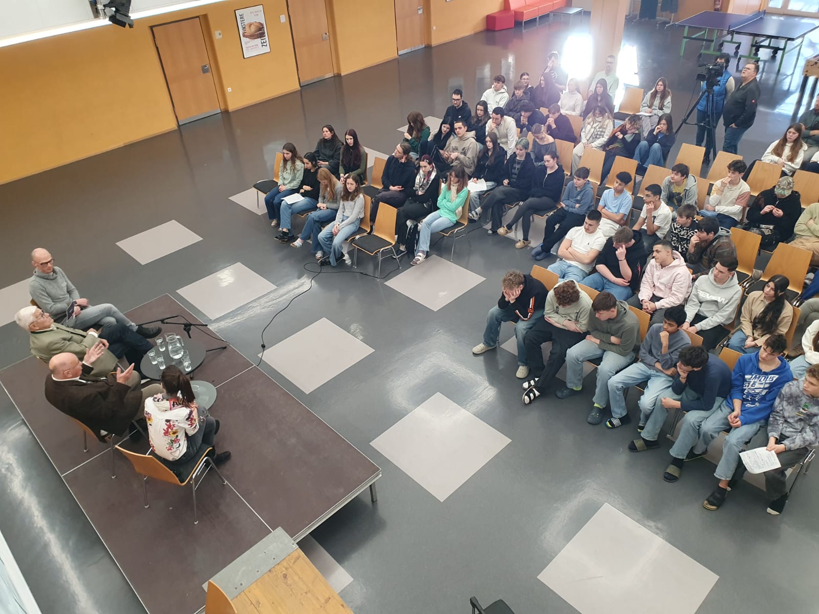 Am Dienstag, 20.1., versammelten sich Schüler*innen des MORG in der Aula um den Erzählungen und Erfahrungen von Grödiger Zeitzeugen des 2. Weltkriegs zu folgen.