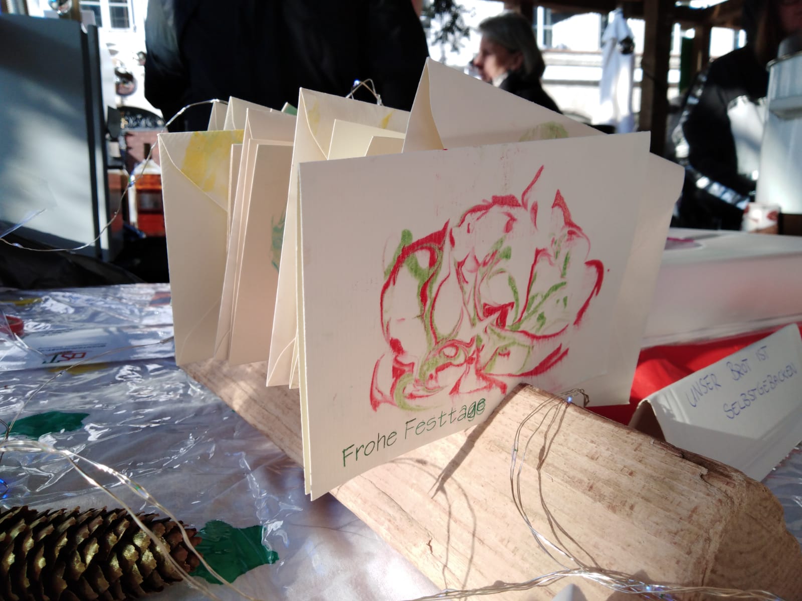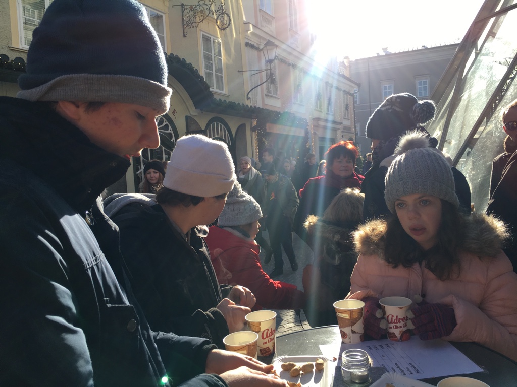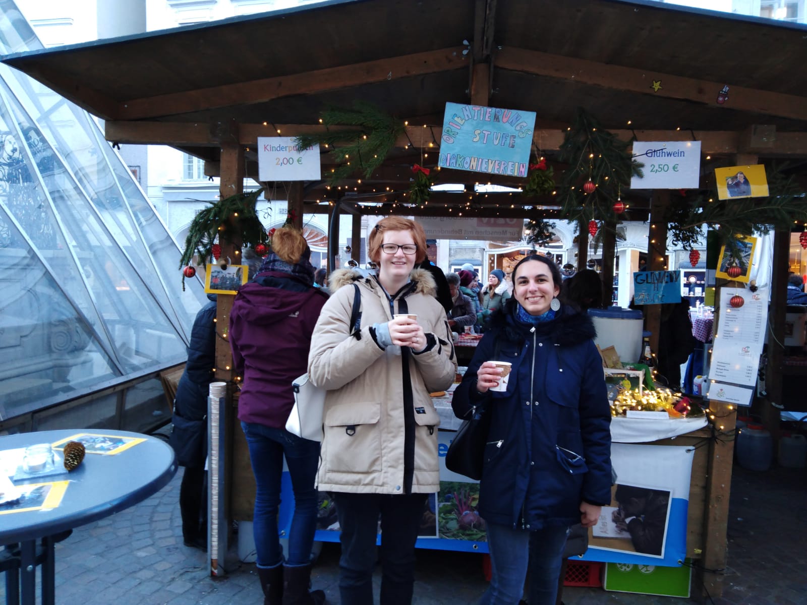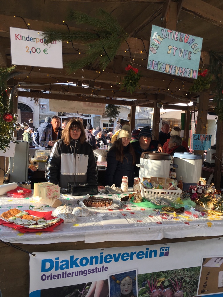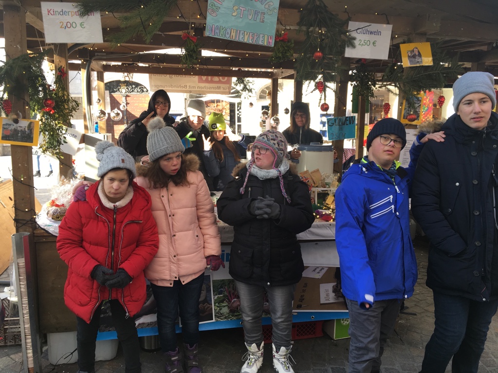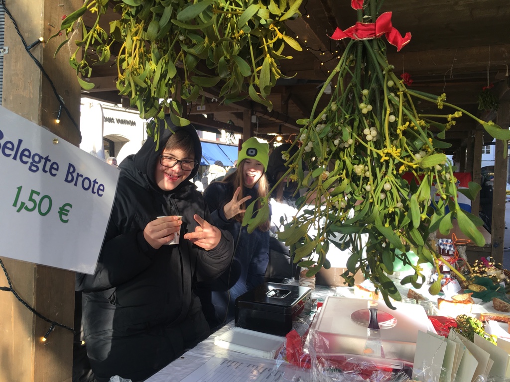Nach monatelangem Karten gestalten, Engel basteln, Äpfel klauben und zu Marmelade verarbeiten, Seifen gießen, Untersetzer drucken, Brot und Kekse backen, Preislisten schreiben, Verkaufsgespräche üben und vielen anderen Vorbereitungen war die OST in der ersten Dezemberwoche mit einem wunderschönen Verkaufsstand am Alten Markt.Nicht nur beim täglichen Aufbau sondern auch beim Verkauf waren die Schülerinnen und Schüler fleißig dabei und haben an den drei Tagen viel Energie für unseren Stand aufgebracht. Kein Wunder, dass bei so professionellen Verkäufern und so liebevoll gestalteten Produkten auch eine gute Summe Geld eingenommen wurde, von welchem wir bereits einen tollen Nikolausbrunch im Kowalski und einen Theaterbesuch bezahlt haben.