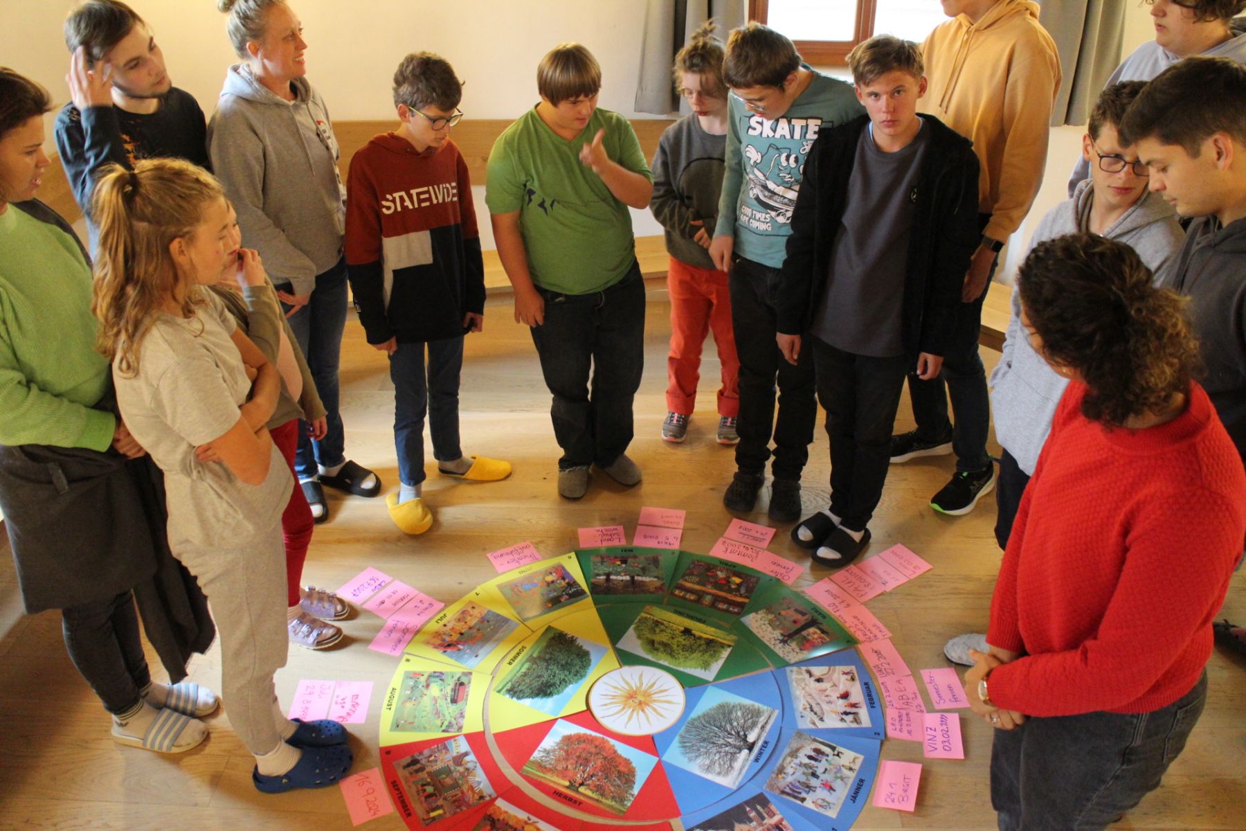 Die Schule ist mit dem Bus nach Radstadt gefahren und wir sind circa nach einer Stunde angekommen. Die Zimmer wurden eingeteilt und wir haben unsere Betten überzogen. Wir sind gleich zur Boulderwand gegangen und sind geklettert. Danach sind wir Mittagessen gegangen. Nach dem Mittagessen sind wir nach oben zum Seminarraum gegangen und haben über die Jahreszeiten geredet. Später sind wir und die ganze Schule zum Turnsaal gegangen und hatten Gottesdienst.