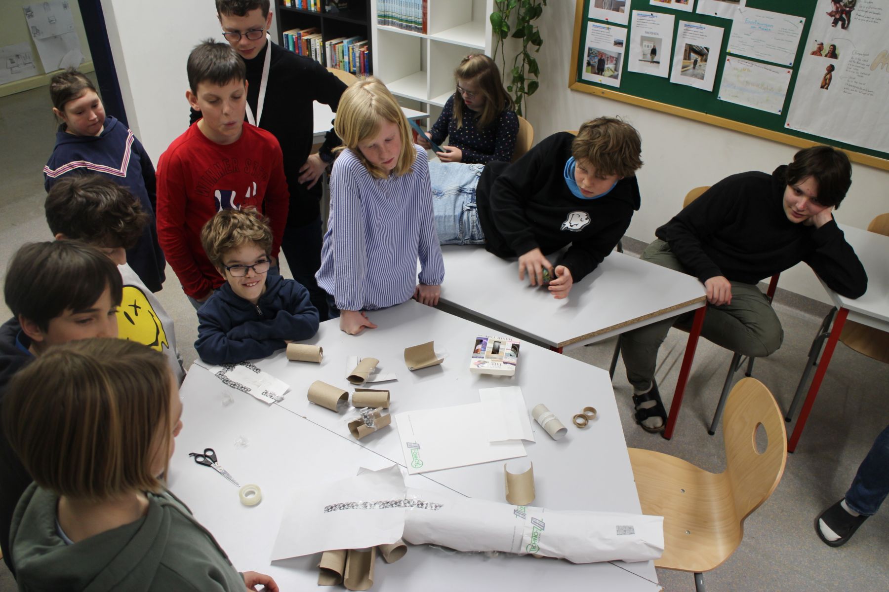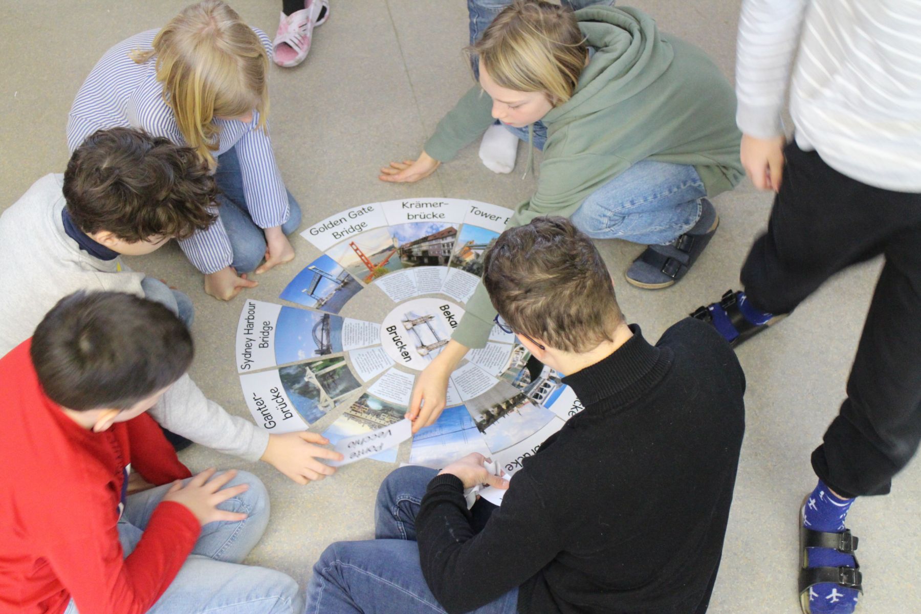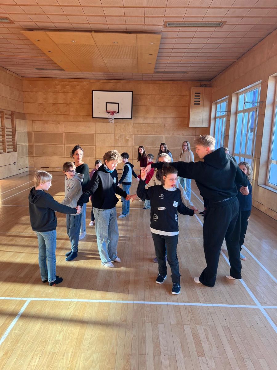Zum Thema „Verbindungen“ hat sich die Orientierungsstufe gemeinsam mit der gesamten IMS drei Tage lang in unterschiedlichen Workshops beschäftigt. In kleinen durchgemischten Gruppen haben sich alle Schüler:innen jeden Tag einem Aspekt des Themas gewidmet und so unterschiedliche Erfahrungen machen können. Ein Workshop bot die Möglichkeit sich mit der geschriebenen Sprache und den unzähligen Wortverbindungen auseinanderzusetzen. In der Küche wurden außergewöhnliche Lebensmittelkombinationen miteinander verbunden, im technischen Werken konnten mittels Knoten, Dübeln etc. Verbindungen entstehen und im Brückenbau Workshop wurde herausgefunden, welche großen Distanzen beispielsweise mit verschiedenen Materialien überwunden werden konnten und und und. Insgesamt gab es eine Auswahl an neun Workshops und so war sicherlich für jede*n etwas passendes dabei.