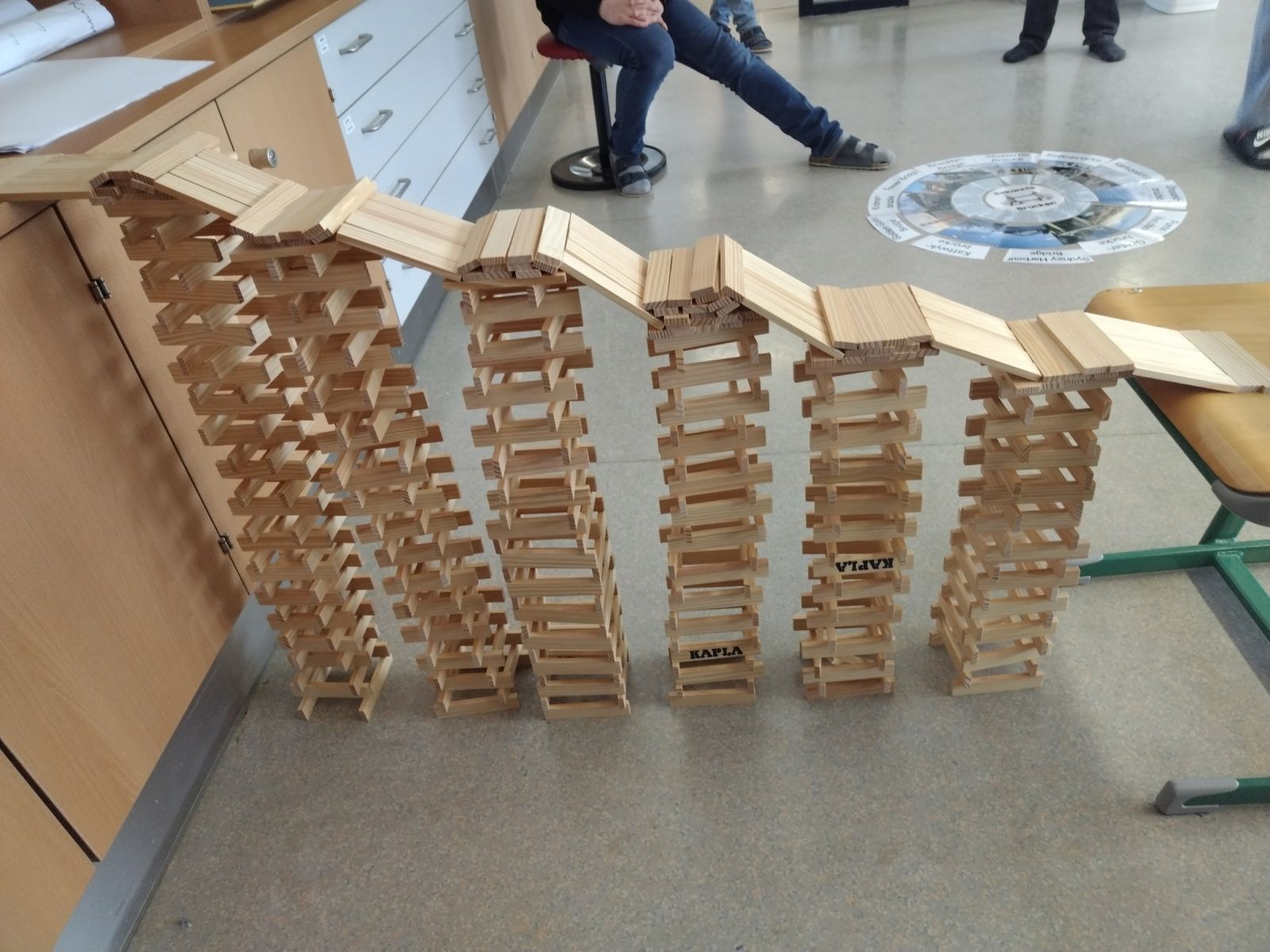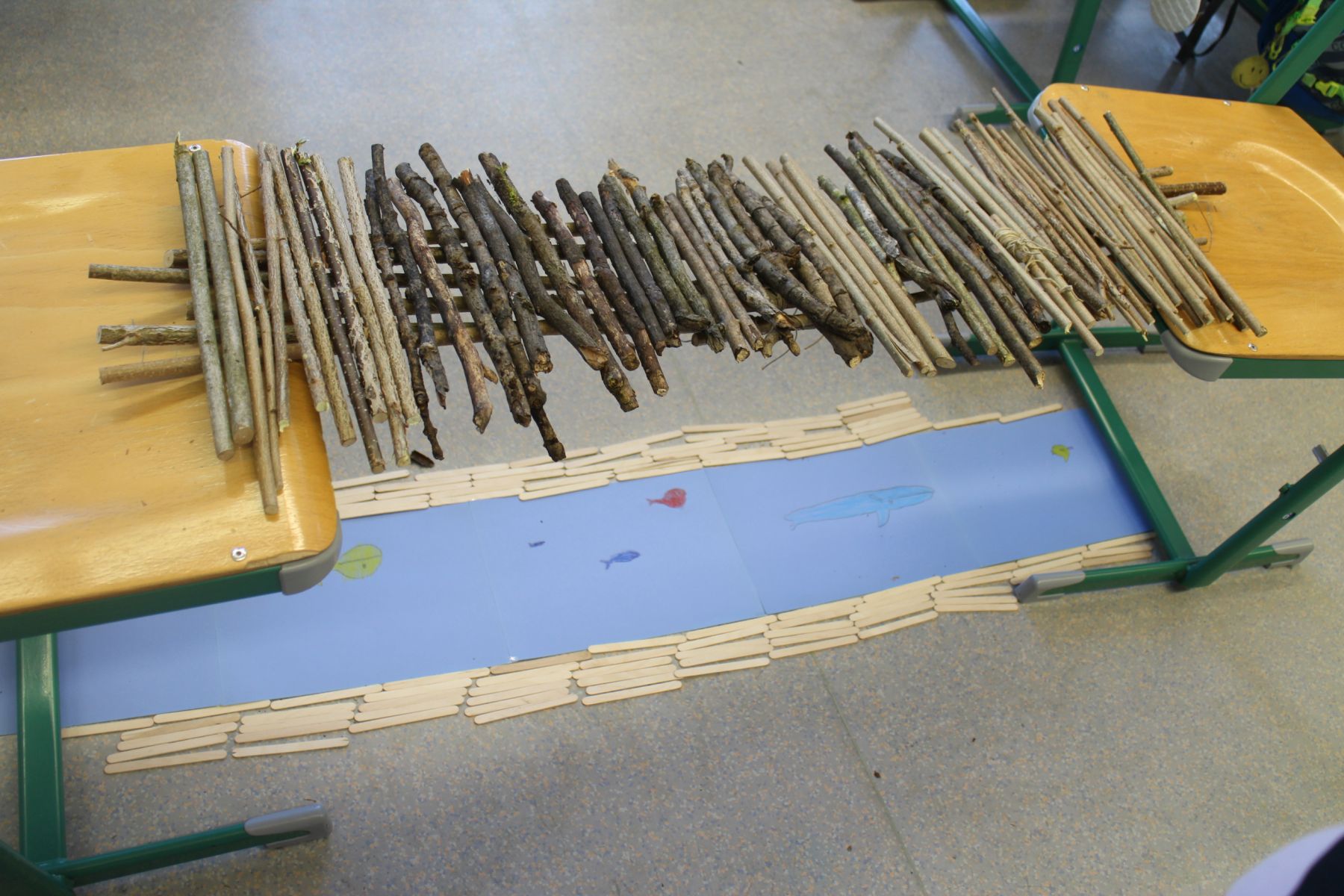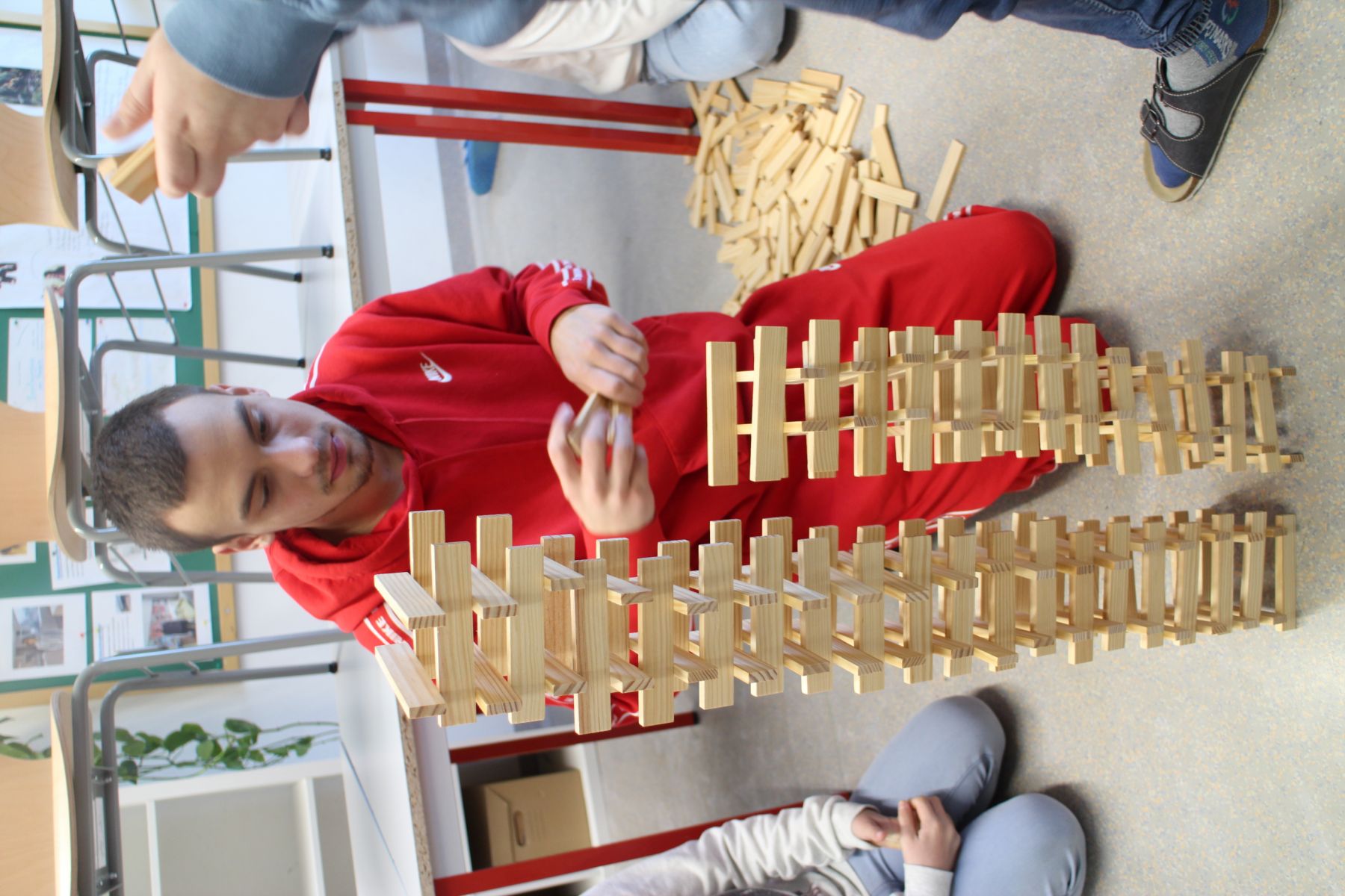 Zum Thema „Verbindungen“ hat sich die Orientierungsstufe gemeinsam mit der gesamten IMS drei Tage lang in unterschiedlichen Workshops beschäftigt. In kleinen durchgemischten Gruppen haben sich alle Schüler:innen jeden Tag einem Aspekt des Themas gewidmet und so unterschiedliche Erfahrungen machen können. Ein Workshop bot die Möglichkeit sich mit der geschriebenen Sprache und den unzähligen Wortverbindungen auseinanderzusetzen. In der Küche wurden außergewöhnliche Lebensmittelkombinationen miteinander verbunden, im technischen Werken konnten mittels Knoten, Dübeln etc. Verbindungen entstehen und im Brückenbau Workshop wurde herausgefunden, welche großen Distanzen beispielsweise mit verschiedenen Materialien überwunden werden konnten und und und. Insgesamt gab es eine Auswahl an neun Workshops und so war sicherlich für jede*n etwas passendes dabei.