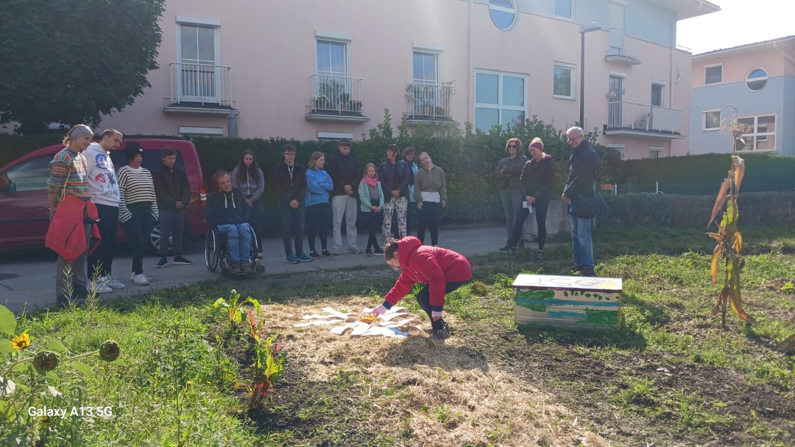 Am Donnerstag, den 02.10.2025 feierten wir das Erntedankfest am Bauernhof. Am Vormittag bereiteten wir eine Jause aus dem von uns geerntetem Gemüse vor. Gegen Mittag kamen Peter Pröglhöf, unsere Direktorin Bettina Pann und einige Familienmitglieder auf den Hof. Zur Einstimmung sangen wir gemeinsam ein Herbstlied und tanzten dazu.