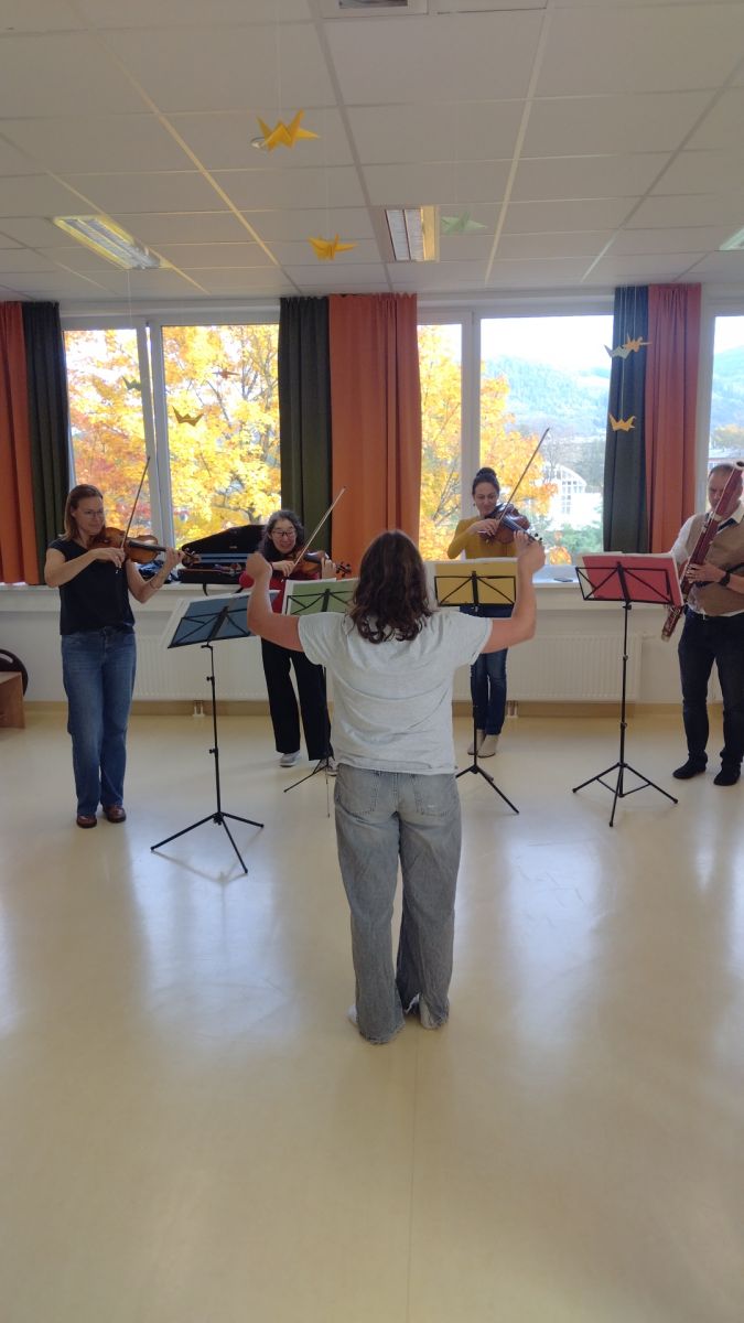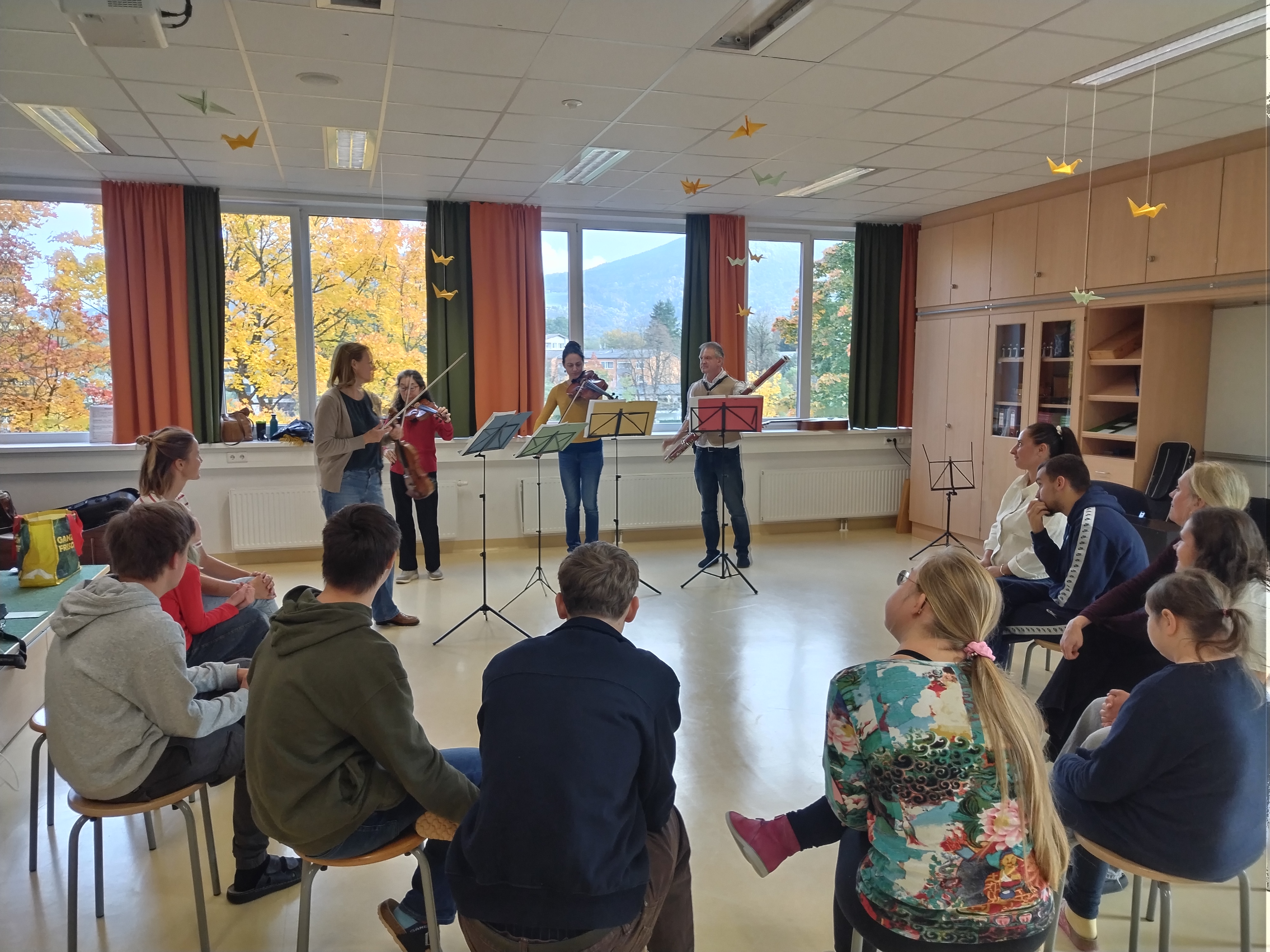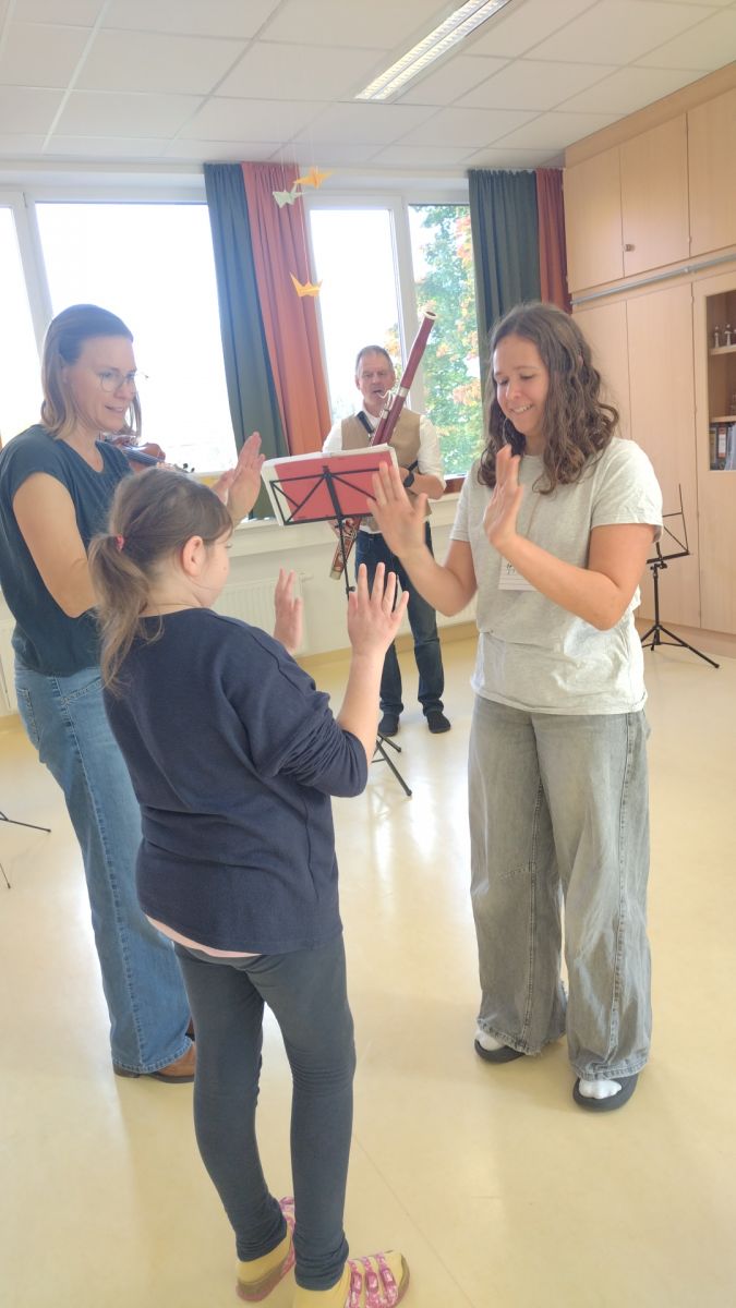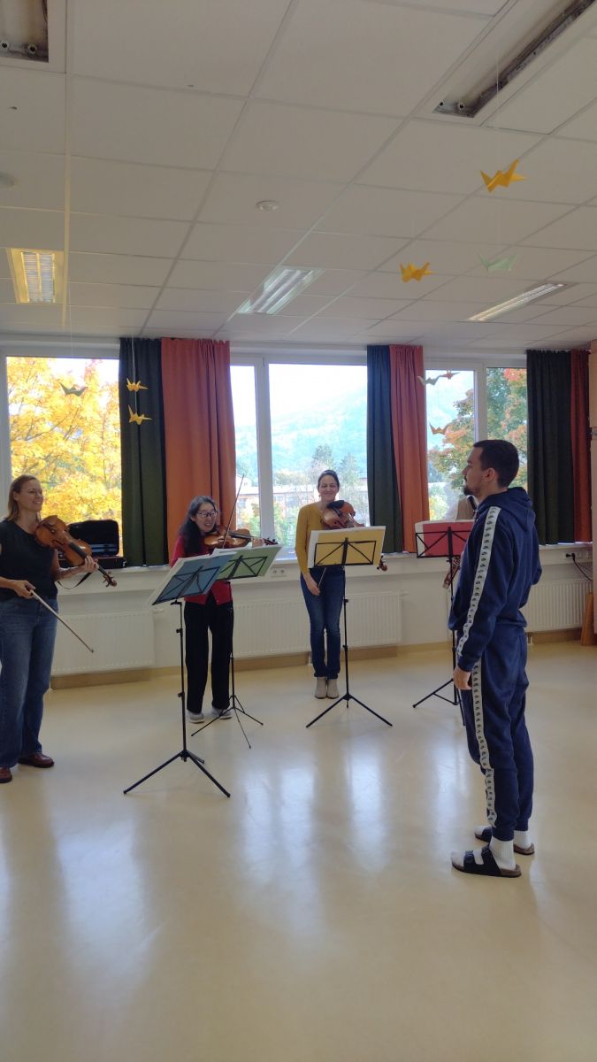 Die Camerata Young hat uns heute aus unserem Alltag rausgeholt und aus unseren Jugendlichen mit ihrem Musikvermittlungs-Workshop ihre kreative Seite hervorgerbacht. Mit vollem Elan zeigten unsere Jugendlichen, dass sie das professionelle Ensemble dirigieren können, als hätten sie nie etwas anderes gemacht. Gemeinsam haben wir vertonte Tierlaute erraten dürfen, unsere Stimme zum Einsatz bringen können und sind zum Takt der unterschiedlichen klassischen Stücke marschiert. Ebenso konnten wir alle unserem Bewegungsdrang intuitiv nachgehen, indem wir zur Musik tanzten. Beim Beobachten der Gesichter wurde deutlich, dass sich sowohl Schüler:innen als auch Lehrkräfte motiviert und frei auf die Musik eingelassen haben und mit fröhlicher Mine den Workshop beendet haben.