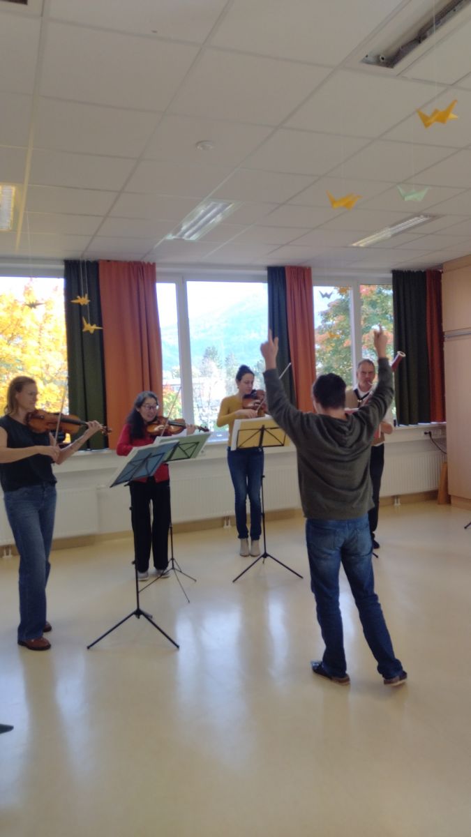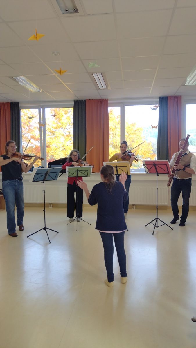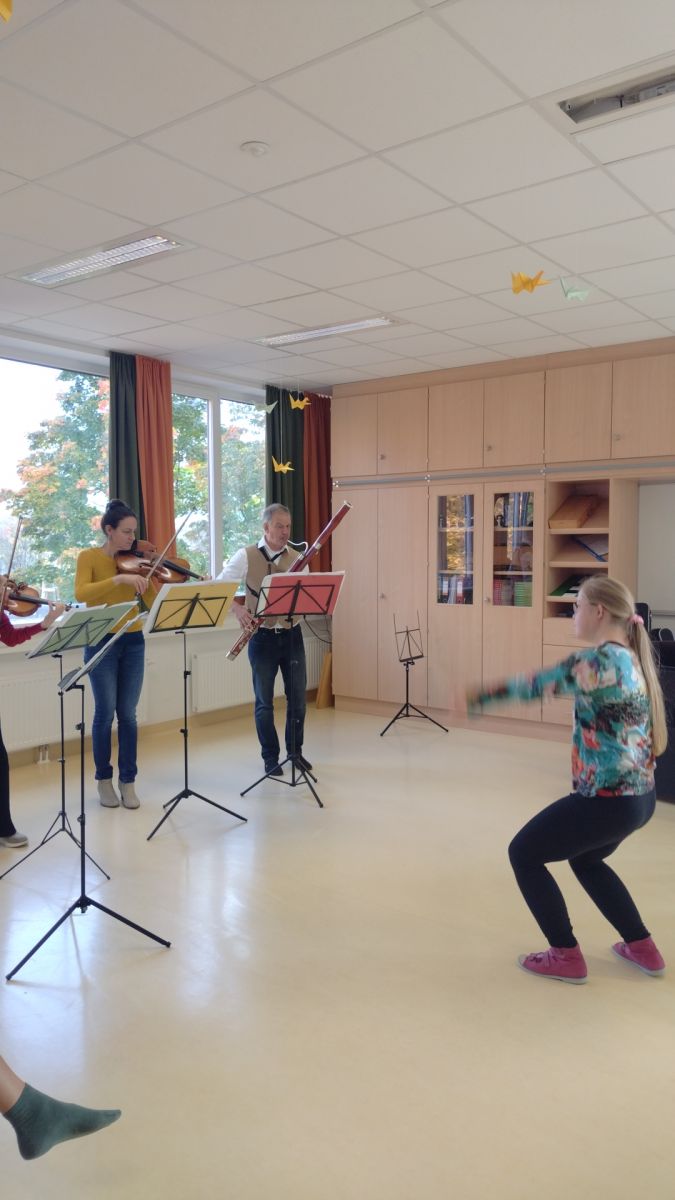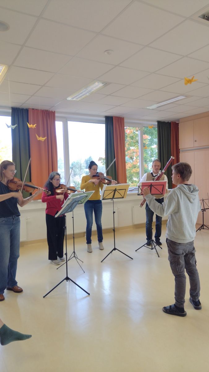 Die Camerata Young hat uns heute aus unserem Alltag rausgeholt und aus unseren Jugendlichen mit ihrem Musikvermittlungs-Workshop ihre kreative Seite hervorgerbacht. Mit vollem Elan zeigten unsere Jugendlichen, dass sie das professionelle Ensemble dirigieren können, als hätten sie nie etwas anderes gemacht. Gemeinsam haben wir vertonte Tierlaute erraten dürfen, unsere Stimme zum Einsatz bringen können und sind zum Takt der unterschiedlichen klassischen Stücke marschiert. Ebenso konnten wir alle unserem Bewegungsdrang intuitiv nachgehen, indem wir zur Musik tanzten. Beim Beobachten der Gesichter wurde deutlich, dass sich sowohl Schüler:innen als auch Lehrkräfte motiviert und frei auf die Musik eingelassen haben und mit fröhlicher Mine den Workshop beendet haben.