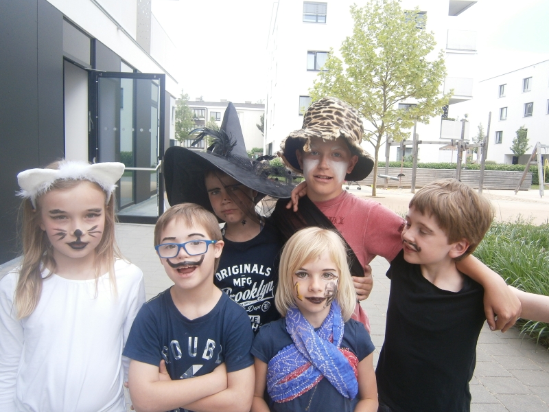 Am 3. Mai führten die Kinder der A-Klasse der Volksschule das Theaterstück "Die kleine Hexe" nach Otfried Preußler auf. Wir haben das Buch umgedichtet und neue Streiche erfunden. Daraus entstand ein lustiges und buntes Theaterstück, an dem wir viel Freude hatten. Für Proben und Aufführung sind wir in den Gemeinschaftsraum „Rosa Zukunft“ gefahren.
