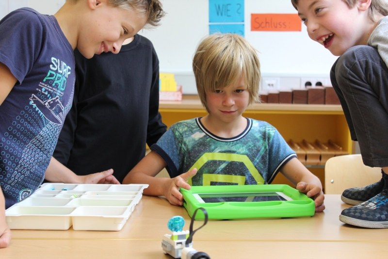 Im Atelier Computer stand diese Woche Programmieren mit Lego-Technik Baukästen WeDo auf dem Programm. Es hat sichtlich Spaß gemacht.