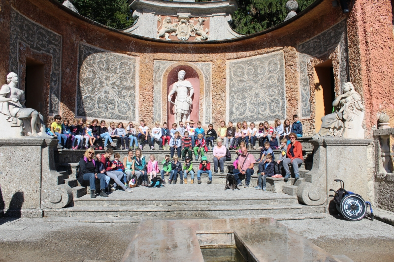 Vor kurzem haben wir mit der Schule einen Ausflug nach Hellbrunn gemacht. Nach dem wunderschönen Spaziergang durch die Hellbrunner Allee haben wir vor Ort eine Spezial-Führung bekommen, in der wir hinter die Kulissen schauen durften: Wie funktionieren die Wasserspiele bzw. die Maschinen? Wie erklingen die Stimmen der Vögel in der Vogelsang-Grotte? Wir wissen es nun J