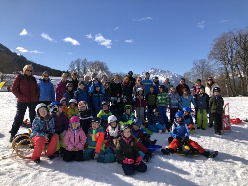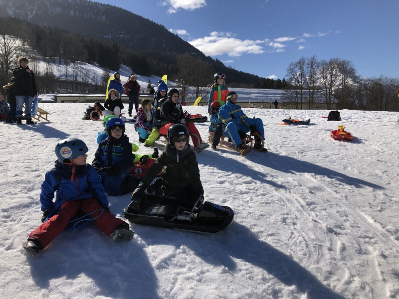 Am 25. Februar fuhr die gesamte Schule bei herrlichem Wetter auf den Obersalzberg zum Rodeln und Schifahren.