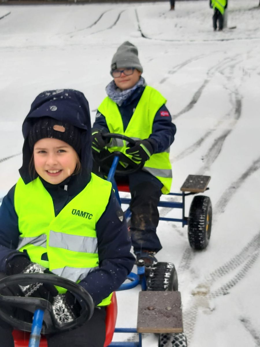 Am 12.12.2019 machte die 3. Klasse eine Verkehrserziehung im Stötzlpark. Anton, der Polizist, erklärte uns am Anfang, was ein „Meister auf zwei Beinen“ alles können muss. Angefangen vom links und rechts schauen, wenn man eine Straße am Zebrastreifen überquert bis zum richtigen Verhalten am Gehweg. Danach durften wir Go-Kart fahren und uns fühlen wie richtige Autofahrer. Es war sehr lustig und informativ. Danke für den tollen Ausflug!